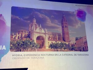 La experiencia nocturna “Hydria”, desarrollada en la catedral de Tarazona por el Obispado de Tarazona, ha sido distinguida con el primer premio a la Mejor Experiencia Turística de Aragón, en la IX edición de los Premios a la Mejor Experiencia Turística, convocados por el Gobierno de Aragón. El galardón se dio a conocer en la Gala de las Experiencias Turísticas 2025, celebrada este martes, con la presencia del consejero de Medio Ambiente y Turismo, Manuel Blasco, y del director general de Turismo y Hostelería, Jorge Moncada.
