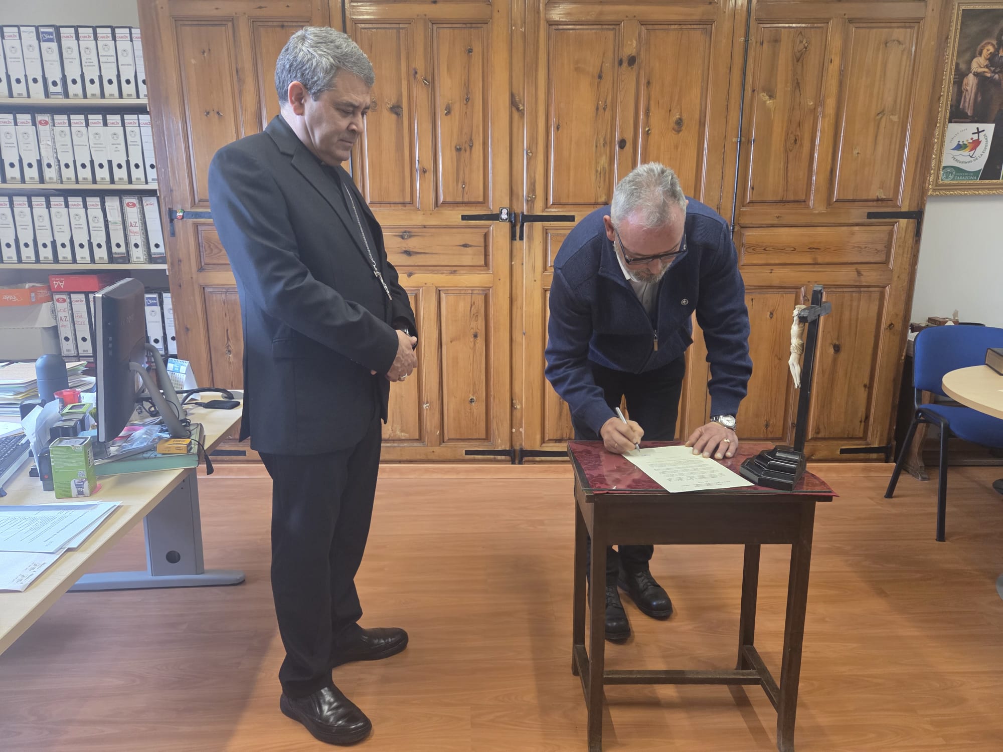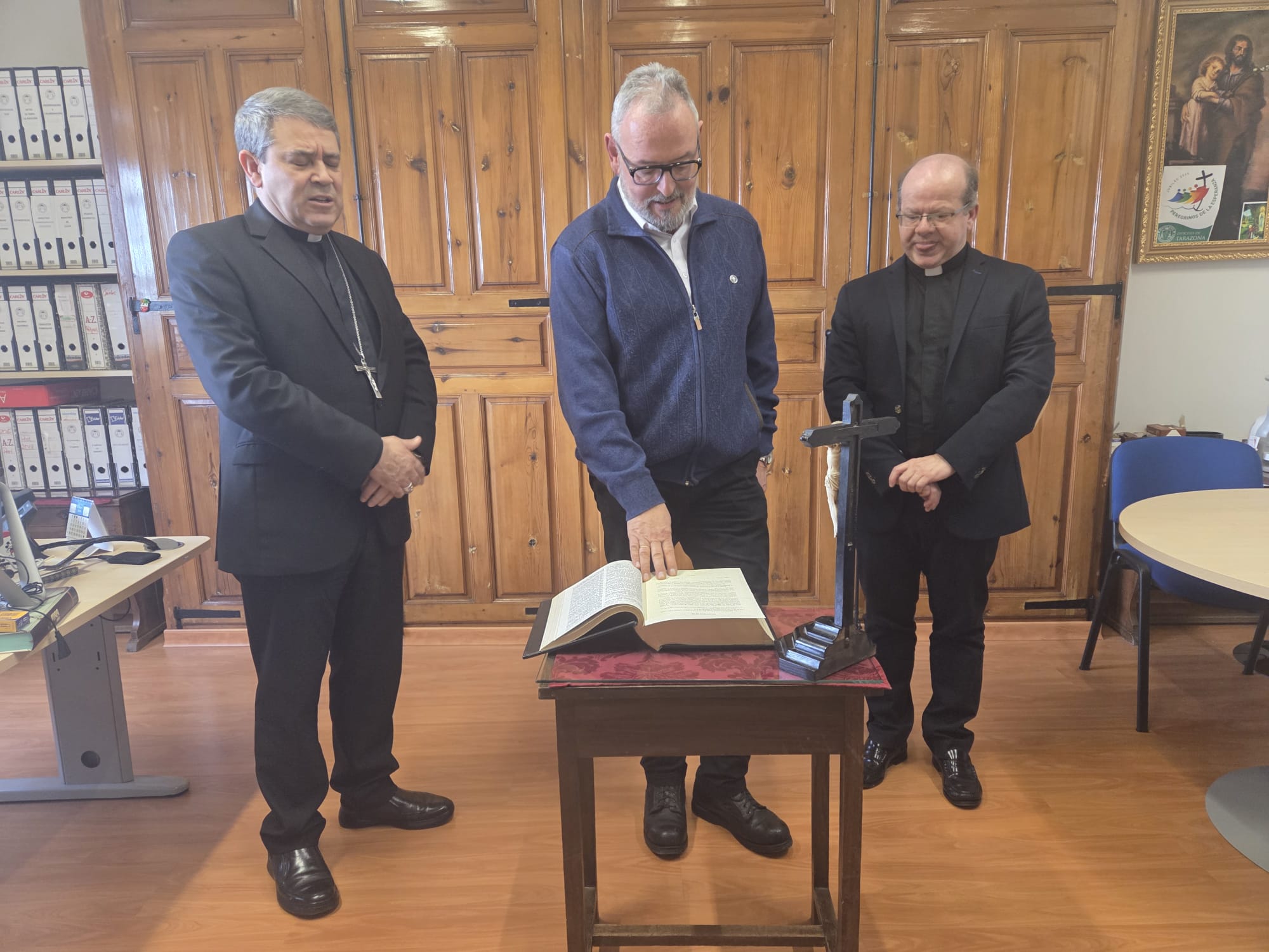 El próximo 25 de enero a las 18:30 horas, en la Basílica del Santo Sepulcro de Calatayud, Jacobo López García, casado y padre de familia, recibirá la ordenación como diácono permanente de manos de Mons. Vicente Rebollo, obispo de Tarazona. El candidato a diacono permanente ha realizado hoy la profesión de fe y el juramento de fidelidad en el Obispado de Tarazona ante el obispo de Tarazona, Mons. Vicente Rebollo, y el vicario general, don Vicente Rebollo Mozos.
