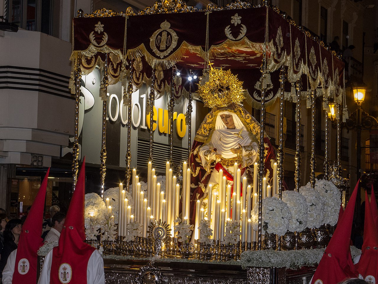 A.C.: Bueno, cuando se lo presentamos a D. Carlos, le gustó mucho, porque primero, era una iniciativa que no le habían hecho las Cofradías y eran entrar en un tipo de celebración que creo que se debe de repetir, ¿no? Pero bueno, es como cuando se quiere ganar cualquier indulgencia: indudablemente ir a la Eucaristía, estar en gracia de Dios, comulgar, ver y contemplar esa imagen devotamente de Nuestra Señora de la Fraternidad en el Mayor Dolor y rezar por las intenciones del Papa. Pero le dije que era, en aquel momento lo gustó mucho, que era un Jubileo en salida, porque nuestra Virgen va siempre, pues, Hospital San Juan de Dios, va a la cárcel, es la único imagen en España que entró dentro de un centro penitenciario, también visitan nuestras mojas contemplativas Dominicas del Convento de Santo Domingo de Guzmán, bueno, y entonces en el decreto le parece muy bien a D. Carlos, pues, se dijo que también se ganara el Jubileo, allí donde peregrinara esta imagen ¿no? También con la Pastoral de la Salud, vamos cada año a una parroquia, pues, también a la parroquia que fuéramos. O sea, que es un Jubileo, pues, podíamos decirlo así en salida, como decía el Papa Francisco, para que alcance, nos parece muy importante, determinados sectores, como son los de la pobreza, la exclusión y la enfermedad, bueno, pues, que es necesario llevar allí ese perdón, y esa gracia de Dios, en la medida en que nosotros podamos, como herramienta, que somos suya, ¿no?