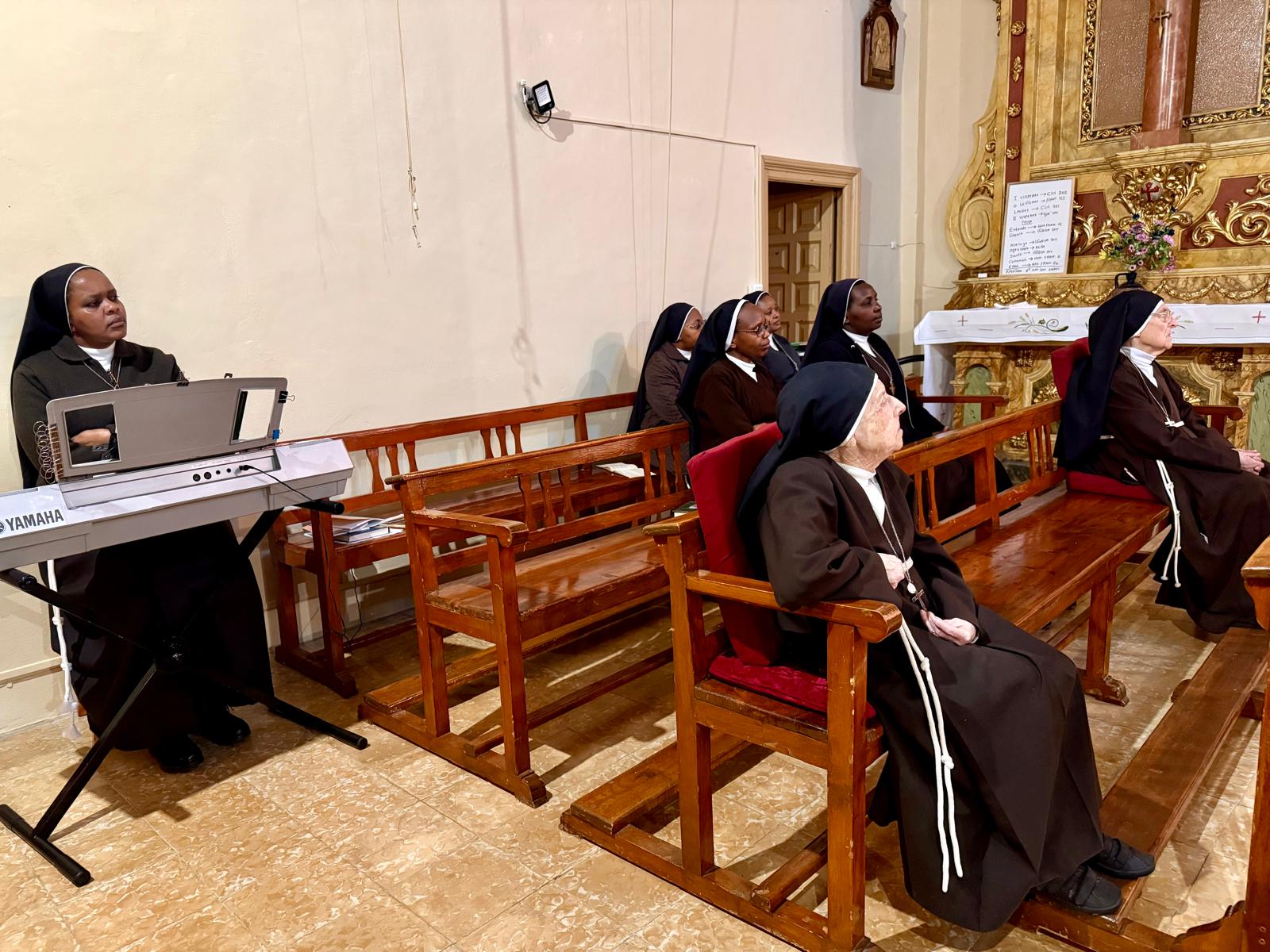 Don Ángel dirigió unas palabras de especial agradecimiento a la comunidad de Capuchinas de Barbastro, señalando que su presencia silenciosa y orante en el claustro es un «don precioso» para la Iglesia local. Dirigiéndose personalmente a cada una de ellas – la madre Jacinta (abadesa), sor Esther, sor Mercedes, sor Josefina, sor Florence, sor Petronila, sor Elisabeth y sor Verónica– les deseó que “el Señor os sostenga con su alegría y su paz.