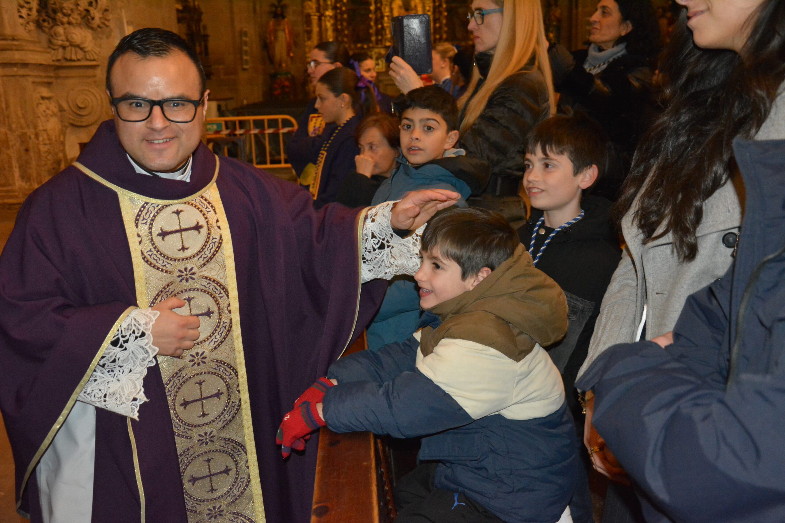 En una brevísima homilía, don Ángel animó a los presentes a buscar en los ajustes de su móvil el “modo Semana Santa». Ante los rostros incrédulos, confirmó que «no está. Hay que buscarlo en el corazón”. Y para guiar esa búsqueda recordó e hizo repetir en voz alta las palabras del papa Francisco –“Todos, todos, todos” y del papa León XIV –“Juntos, juntos, juntos” para exhortar a vivir la Cuaresma “todos juntos, escuchándonos y ayunando de todo lo que sobra”.