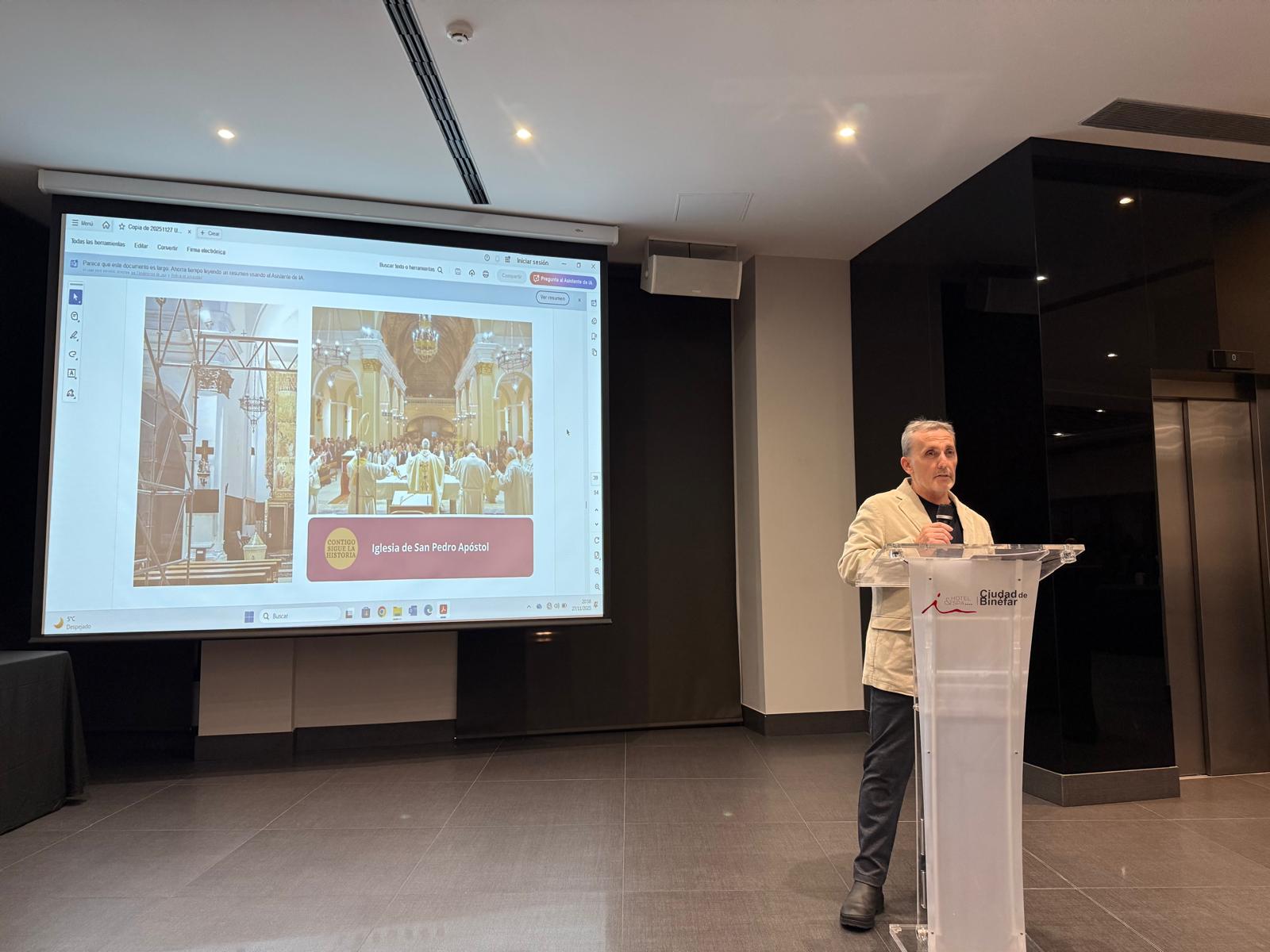 Por su parte, el periodista Paco Aznar hizo memoria para narrar cómo surgió la plataforma que, bajo el lema «Contigo sigue la historia», se movilizó para conseguir fondos destinados a las obras de la iglesia de San Pedro Apóstol, que acometió la parroquia. El movimiento ciudadano -personal, de empresas e instituciones- se plasmó en actos solidarios, iniciativas y aportaciones que lograron que los andamios desparecieran de la iglesia de Binéfar, la iglesia de todos.