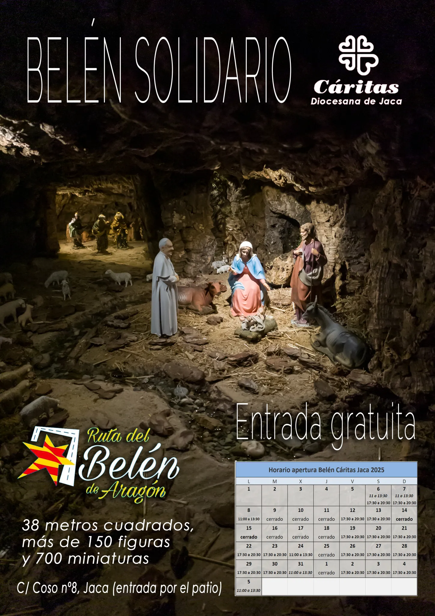 Con esta propuesta, Cáritas Jaca vuelve a unir arte, tradición, fe y compromiso social, ofreciendo un belén que no solo se contempla, sino que también interpela y ayuda a sostener la acción solidaria durante todo el año.