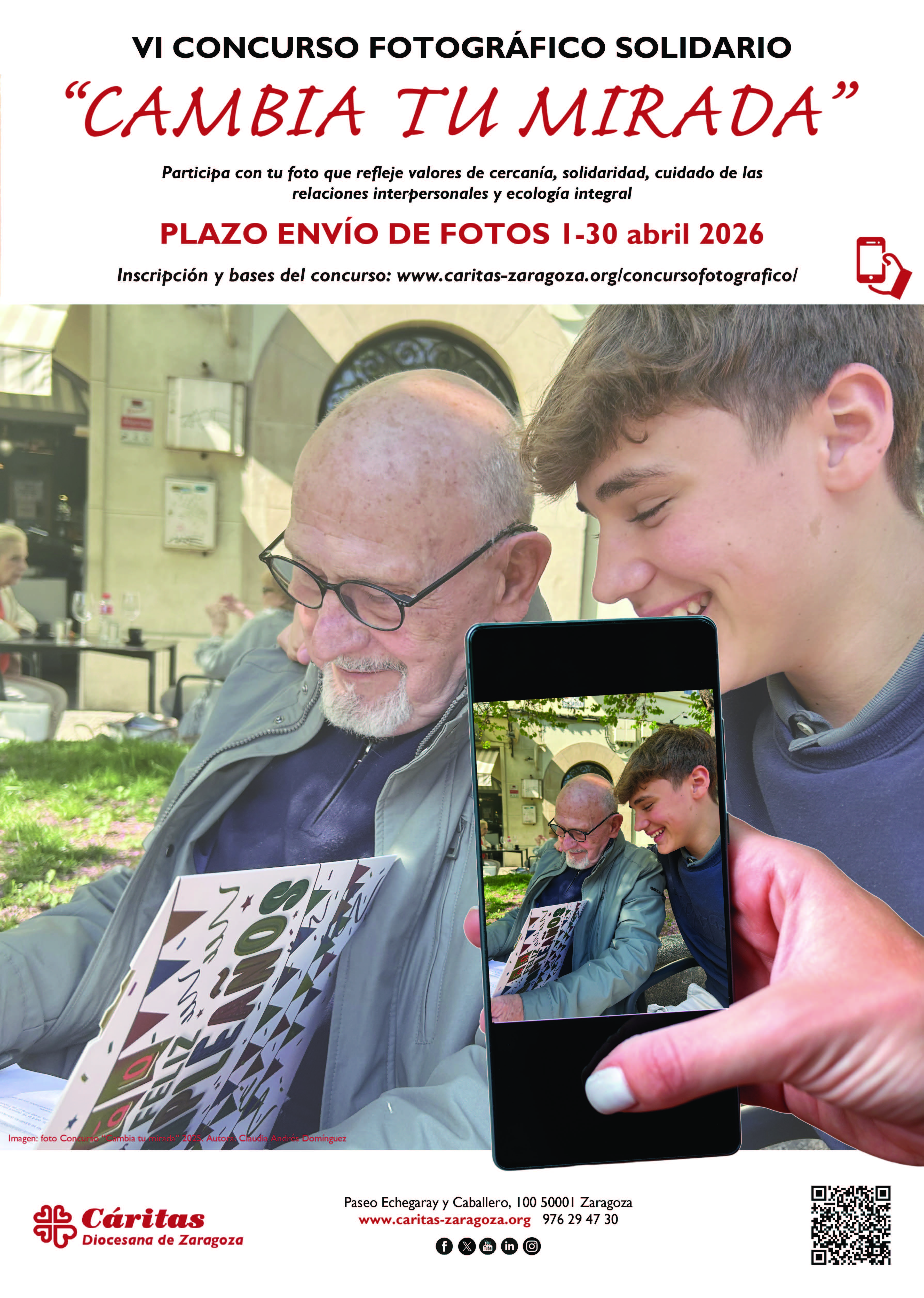 Cáritas Diocesana de Zaragoza ha lanzado la sexta edición de su concurso fotográfico solidario “Cambia tu Mirada”. Esta iniciativa, consolidada ya en la agenda social de nuestra diócesis, busca animar a toda la sociedad a utilizar el objetivo de sus cámaras para descubrir y compartir mensajes de esperanza en medio de nuestra realidad cotidiana.
