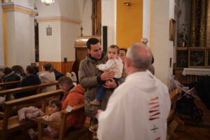 A las 17:00 horas dio comienzo la eucaristía, en la que cerca de 50 niños y niñas nacidos durante el último año recibieron la bendición, acompañados por sus padres, madres y abuelos, en un ambiente marcado por la emoción, la fe y el sentido comunitario.