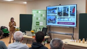 Finalmente, la voluntaria de Mercedes Britian, Chreres, explicó cómo nació y cómo funciona el complejo de viviendas para trabajadores temporales Clara Campoamor, que entraron en servicio en la campaña 2024. Las casitas de temporeros, que impulsó la Fundación Reina Sofía, funcionan con la coordinación de todas las administraciones y están gestionadas por Cáritas, como respuesta a la realidad de inmigración y falta de vivienda.