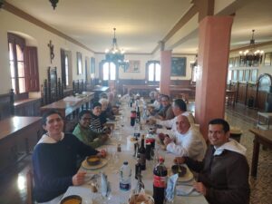La Comunidad de monjes del monasterio abrió sus puertas con una agradable acogida. Saludos, un sabroso refrigerio, y ya nos sentíamos como en nuestra propia casa.