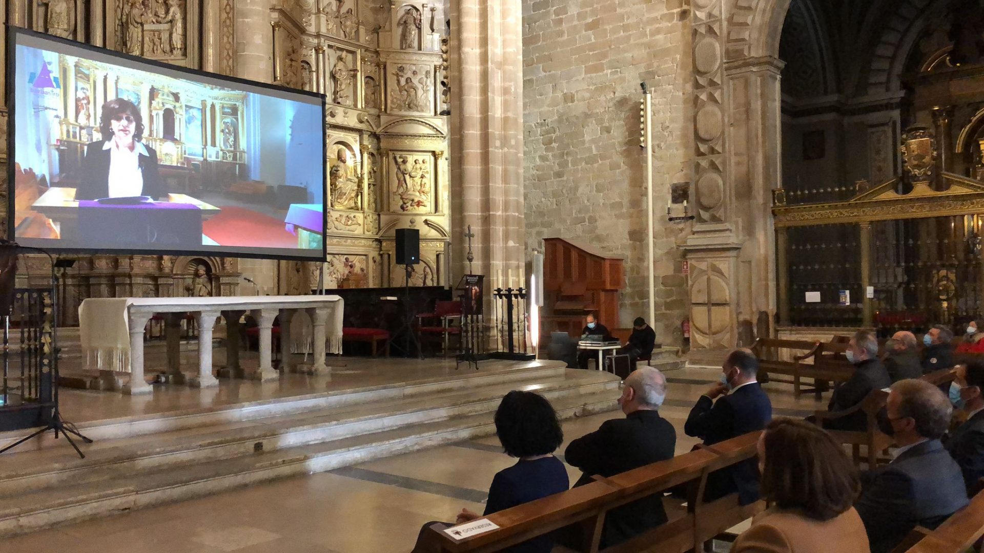 Del Olmo, cuya trayectoria profesional presentó la redactora jefe de la revista Ecclesia, Sara de la Torre, dedicó sus palabras «a todos los que han muerto en la diócesis de Barbastro-Monzón en este tiempo de pandemia, a los que no hemos podido despedir». Una pandemia «que nos lleva a poner en práctica más que nunca la creatividad del amor«, afirmó, y que dota de mayor sentido la vivencia de la Pasión y la Resurrección. «¡Cuántas miradas sanadoras en este tiempo de Covid! ¡Cuántas miradas han expresado el amor ante tanto dolor!», exclamó antes de animar a los presentes a dejarse «sostener por las mujeres del evangelio» e imitarlas al arrodillarnos «a los pies de la cruz, a los pies del que sufre» para ver «el verdadero rostro de Dios».