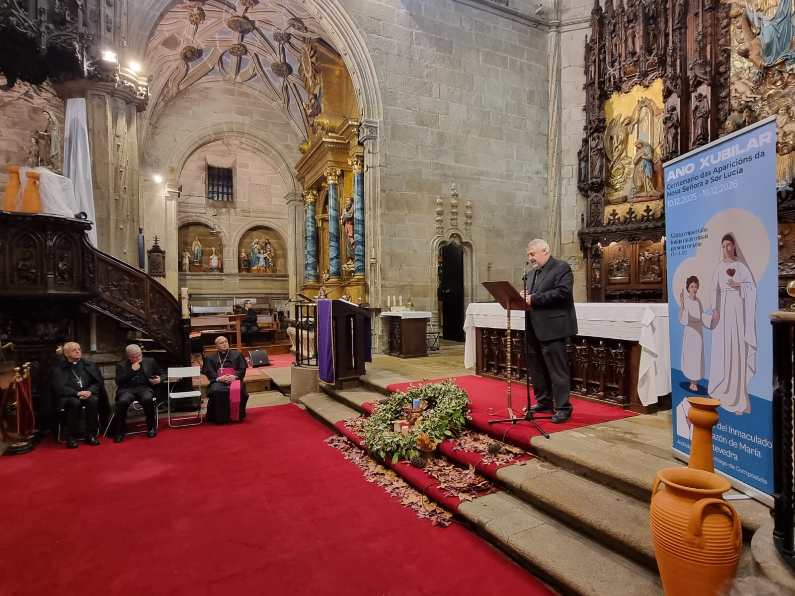D. Carlos Escribano asistió a la ceremonia, que tuvo lugar en la Real Basílica de Santa María la Mayor de Pontevedra, en representación del Presidente de la Conferencia Episcopal Española (CEE). El acto marcó oficialmente el inicio de un tiempo extraordinario de gracia y peregrinación.