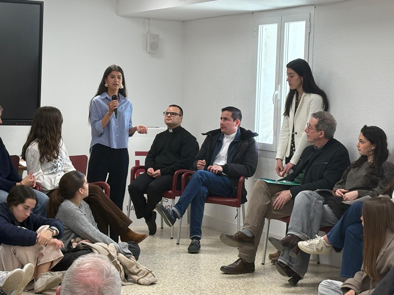 Después tomó la palabra don Ángel, quien, lejos de ofrecer respuestas abstractas, planteó situaciones concretas: historias reales de jóvenes de la diócesis marcadas por dificultades familiares, relaciones complejas, dudas académicas, amistades frágiles o experiencias de adicción. No eran relatos ajenos, sino espejos en los que reconocerse, preguntas que interpelaban directamente a la vida de los presentes.