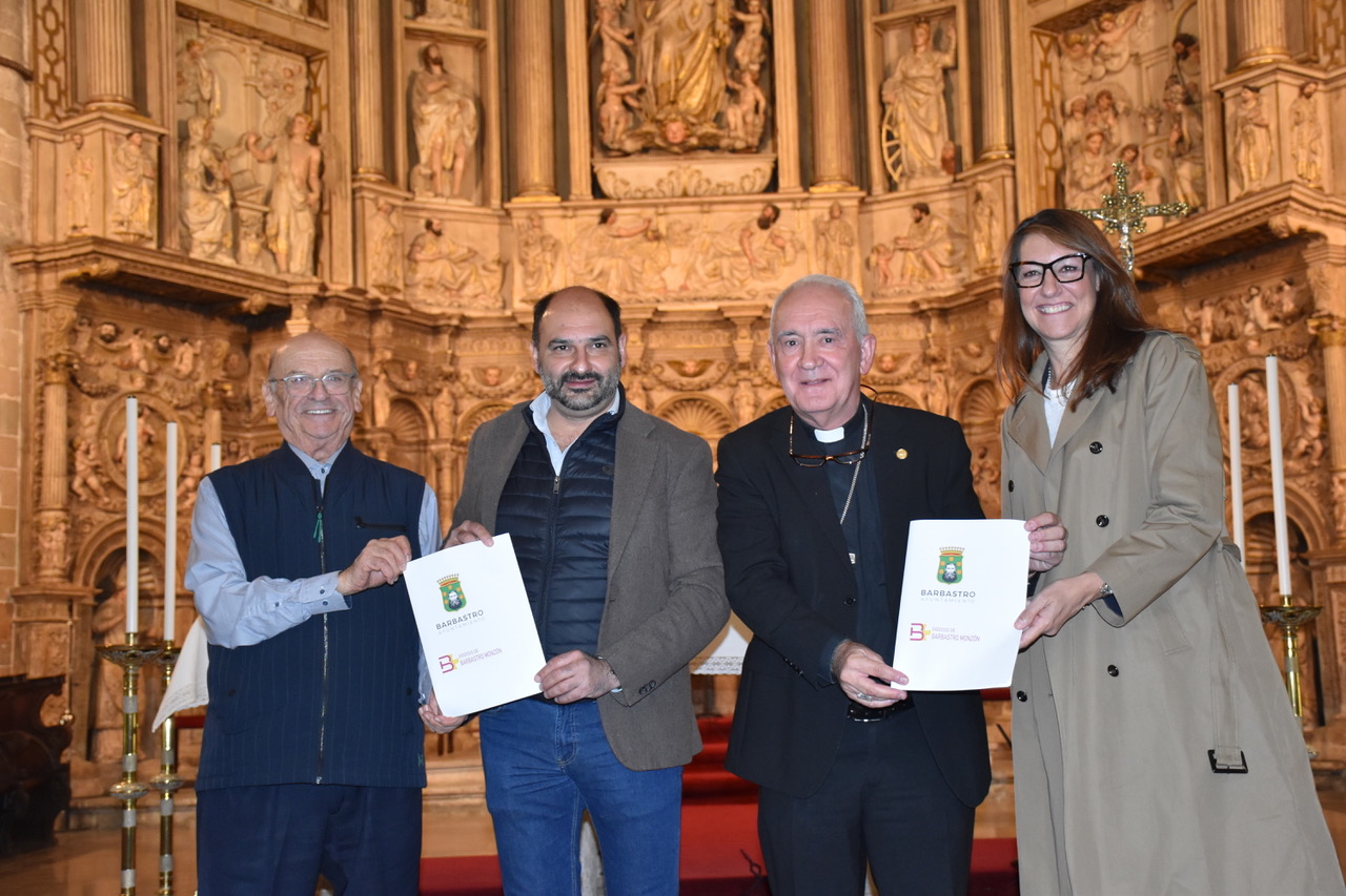 El Ayuntamiento de Barbastro y el Obispado de Barbastro-Monzón han firmador un convenio por el que el consistorio aportará 100.000 euros del Presupuesto Municipal de 2025 para actualizar el Plan Director de la Catedral de Barbastro, el documento base que guiará todas las actuaciones de la necesaria rehabilitación integral de este monumento declarado BIC. Esta actualización parte del Plan Director redactado en 1999 como paso previo para la inclusión de la Catedral de Nuestra Señora de la Asunción en el Plan Nacional de Catedrales, aprobado en 2012. El Plan Director de la Catedral que define, cuantifica y jerarquiza las actuaciones de rehabilitación, conservación y mejora que precisa el templo mayor de la Diócesis para, y así lo han explicado el Obispo, el Alcalde, el delegado diocesano de Patrimonio Ángel Noguero y la concejal de Hacienda y Turismo Blanca Galindo, “lucir en todo su esplendor” y, lo más importante, optar a las ayudas vinculadas al Plan Nacional de Catedrales, aprobado en 2012.