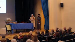 El reconocimiento a este servicio dio paso a la ecónoma, Marta Calavera, que habló de autofinanciación y recursos, como vía para mantener activa la labor principal de la Iglesia: atender a las personas. Y pidió la intervención de Joana, colombiana que llegó con su familia a Graus como usuaria del servicio de atención al inmigrante de Cáritas. Hoy, ella y su hija Martina son voluntarias de Cáritas, muestra viva de la misión de la Iglesia en el territorio.