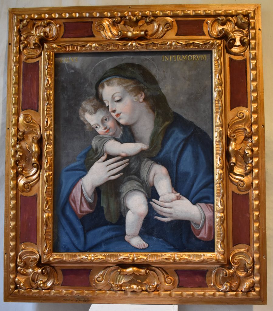 El cuadro de la Virgen de la Salud es el motivo central de un retablo que hay en la ermita de Santa Quiteria de Celadas. El coste de los trabajos es de unos 3.000 euros.