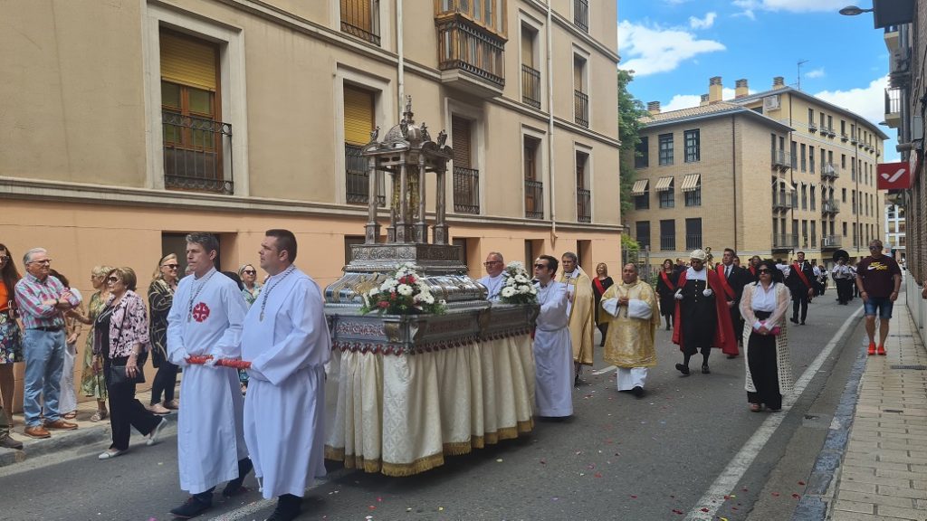 D. Vicente ha felicitado a los padres de los niños y niñas por haber querido que sus hijos comulguen y a los pequeños les ha dicho que «nos ayudáis a recordar la ilusión con la que todos recibimos por primera vez a Jesús». El obispo de Tarazona ha definido la comunión como una manera de crecer espiritualmente, «algo que debemos de hacer continuamente y una forma de lograrlo es con la eucaristía, cuya fiesta celebramos hoy». «El que no come de su carne y no bebe de su sangre no tendrá esa vida eterna porque le faltará ese complemento que enriquece su interior para que su vida de aquí sea más plena», ha continuado D. Vicente. «Los que somos creyentes tenemos esa fuerza interior para vivir nuestra vida con plenitud, con confianza en Dios y entregados a los demás porque estamos alimentados por la fe y por la eucaristía».
