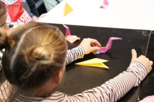 La música de la Malayer Band puso ritmo a la mañana del sábado en la Plaza Miguel Merino, mientras que por la tarde la Escuela Museo de Origami de Zaragoza congregó a numerosos niños y familias en su popular taller de papiroflexia.