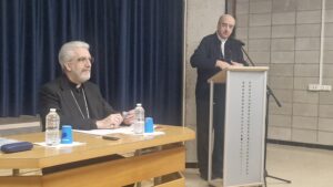 Más de un centenar de sacerdotes, religiosos y laicos acudieron al salón de actos del Colegio Santa Rosa de Huesca, con la presencia de los equipos sinodales de trabajo de ambas diócesis. La jornada comenzó con una oración y la reflexión del obispo en torno a la lectura del Evangelio del domingo 11 de enero, que lleva a considerar que Cristo es el centro del camino sinodal que estamos llevando adelante. Somos hijos de Dios y el Espíritu Santo esté presente, añadió.