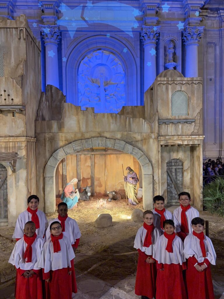B.B.: Bueno, la escolanía siempre ha participado en la Misa del Gallo, los niños y las familias están preparados para esto. Quiero decir, nosotros ya sabemos que hay momentos puntuales a lo largo del año litúrgico, los que estamos presentes, pues en los momentos propios de la liturgia, lógicamente tienen sus tiempos de descanso y ya está coordinado con las familias para que huyen especialmente el descanso en estos días. Y ellos participan en la Misa del Gallo a las 12:00 de la noche, pero también participan en la de la venida de la Virgen, en la noche del 1 al 2 de enero.