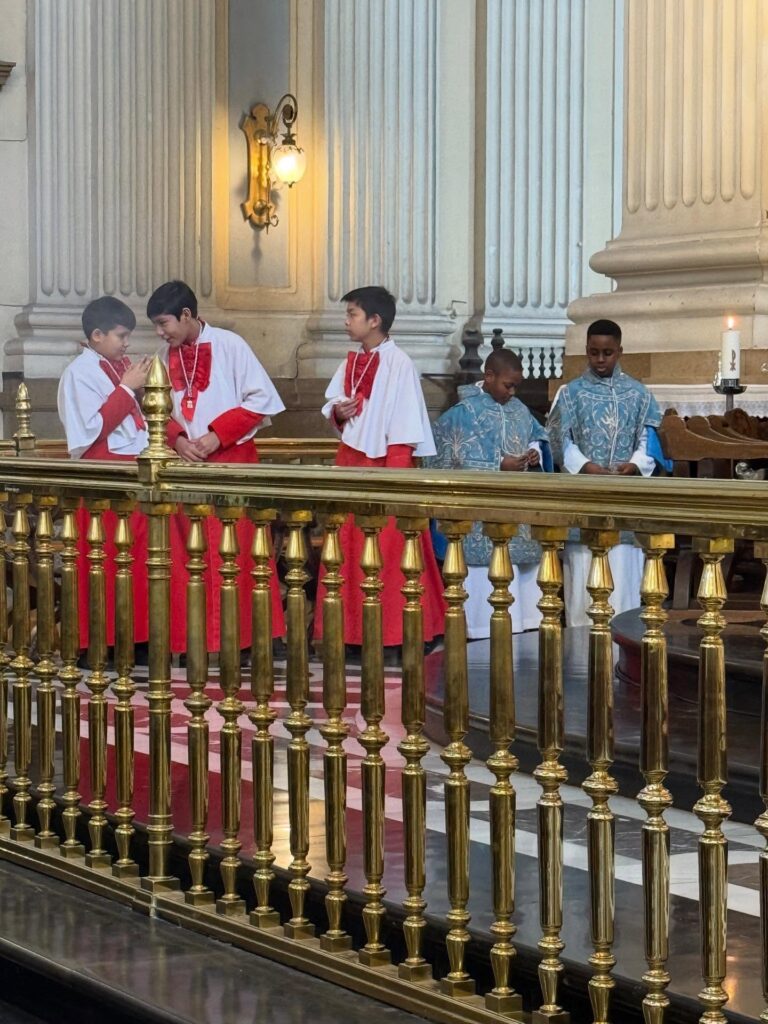 B.B.: Bueno, a ver, la voz de un niño siempre aporta, pues te remonta a sentimientos de pureza, de ser blanco, de acoger el mensaje de Dios desde el corazón de un niño. Quiero decir, transmiten bajo mi punto de vista, pues eso, el corazón dispuesto total de la inocencia de un niño, eso no tiene comparación con nada. Claro, humildemente lo digo, ¿no? Que para mí es eso. Pero bueno, la liturgia es sabia en su manera de transmitir y la música en la liturgia no está ahí por casualidad y no se pensó en las escolanías por casualidad.