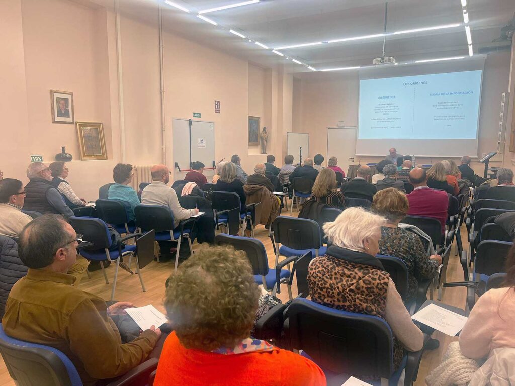 Durante la conferencia, Génova realizó un recorrido histórico por los orígenes de la inteligencia artificial, remontándose a mediados del siglo XX y a figuras como Norbert Wiener y Claude Shannon, cuyas aportaciones sentaron las bases de la cibernética y de la teoría matemática de la comunicación. Explicó cómo estas corrientes redujeron el lenguaje y el pensamiento humano a procesos matemáticos, una visión que sigue influyendo en los actuales modelos de lenguaje como ChatGPT.