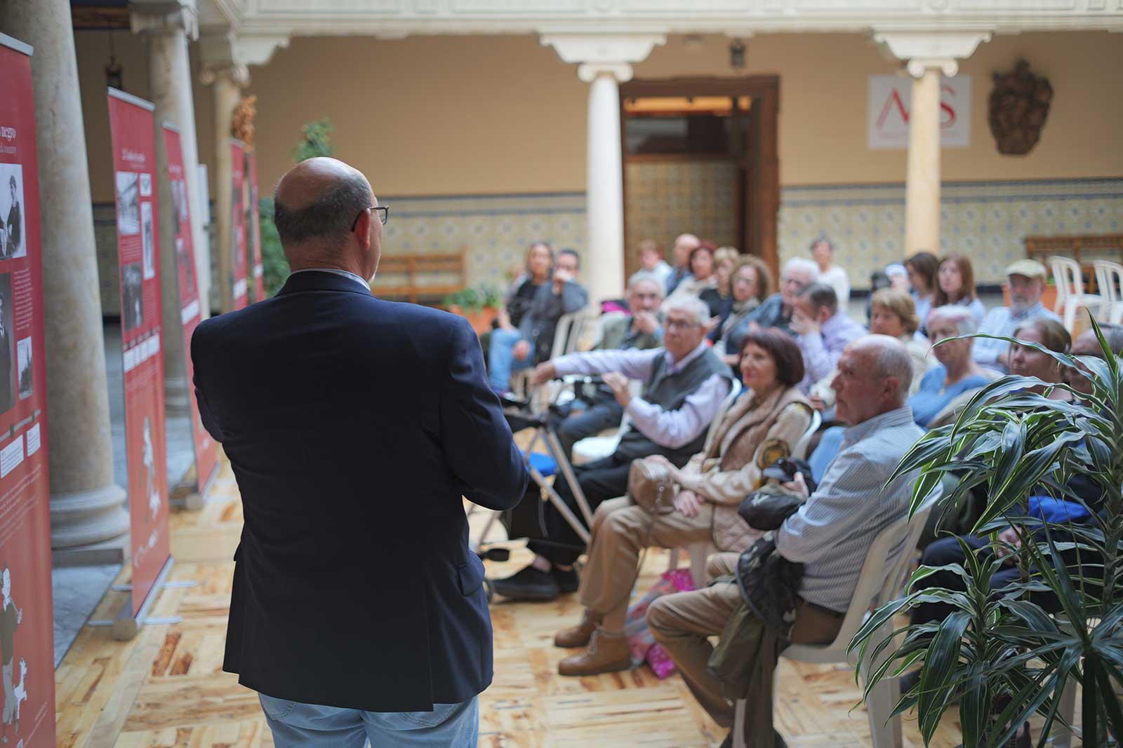 Por su parte, Riaza explicó brevemente el origen y recorrido de la exposición, invitando a los asistentes a contemplarla desde distintas perspectivas: histórica, científica y filosófica. Asimismo, animó al diálogo y a la formulación de preguntas, señalando que la muestra busca precisamente despertar el interés y la reflexión en torno a los grandes interrogantes del universo. El profesor relató también cómo esta iniciativa nació a partir de su trabajo divulgativo y de diversas colaboraciones en el ámbito de la relación entre ciencia y fe, lo que dio lugar a una primera versión de la exposición en 2011, desde entonces itinerante por diversas ciudades y centros culturales.