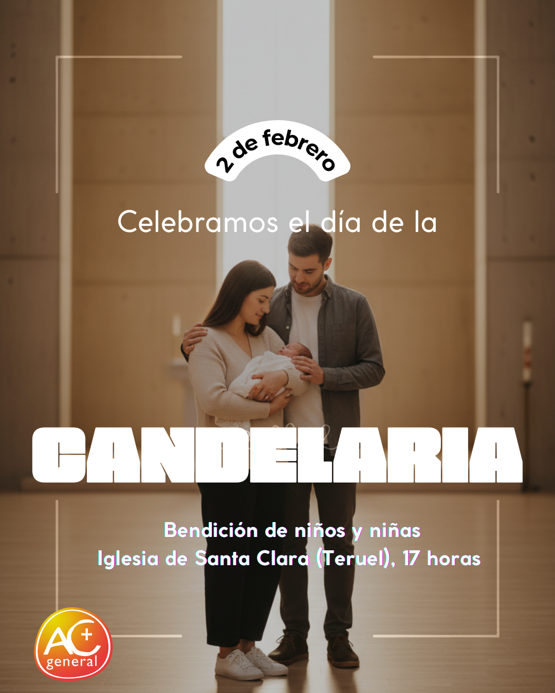 La Acción Católica General (ACG) de Teruel celebrará el próximo lunes 2 de febrero, festividad de la Presentación del Señor, la tradicional celebración de la Candelaria, a las 17:00 horas en la iglesia de Santa Clara.