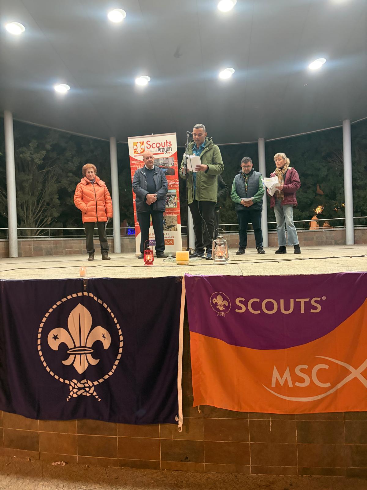En la tarde de ayer, 24 de diciembre, la Plaza de España de Binéfar se convirtió una vez más en un símbolo de convivencia y esperanza. La Agrupación Scout San Jorge (Scouts d’Aragón-MSC) organizó la 26ª edición de la Oración Interreligiosa por la Paz, un acto que este año ha cobrado una especial relevancia bajo el lema: «Uniendo corazones, iluminando el mundo».