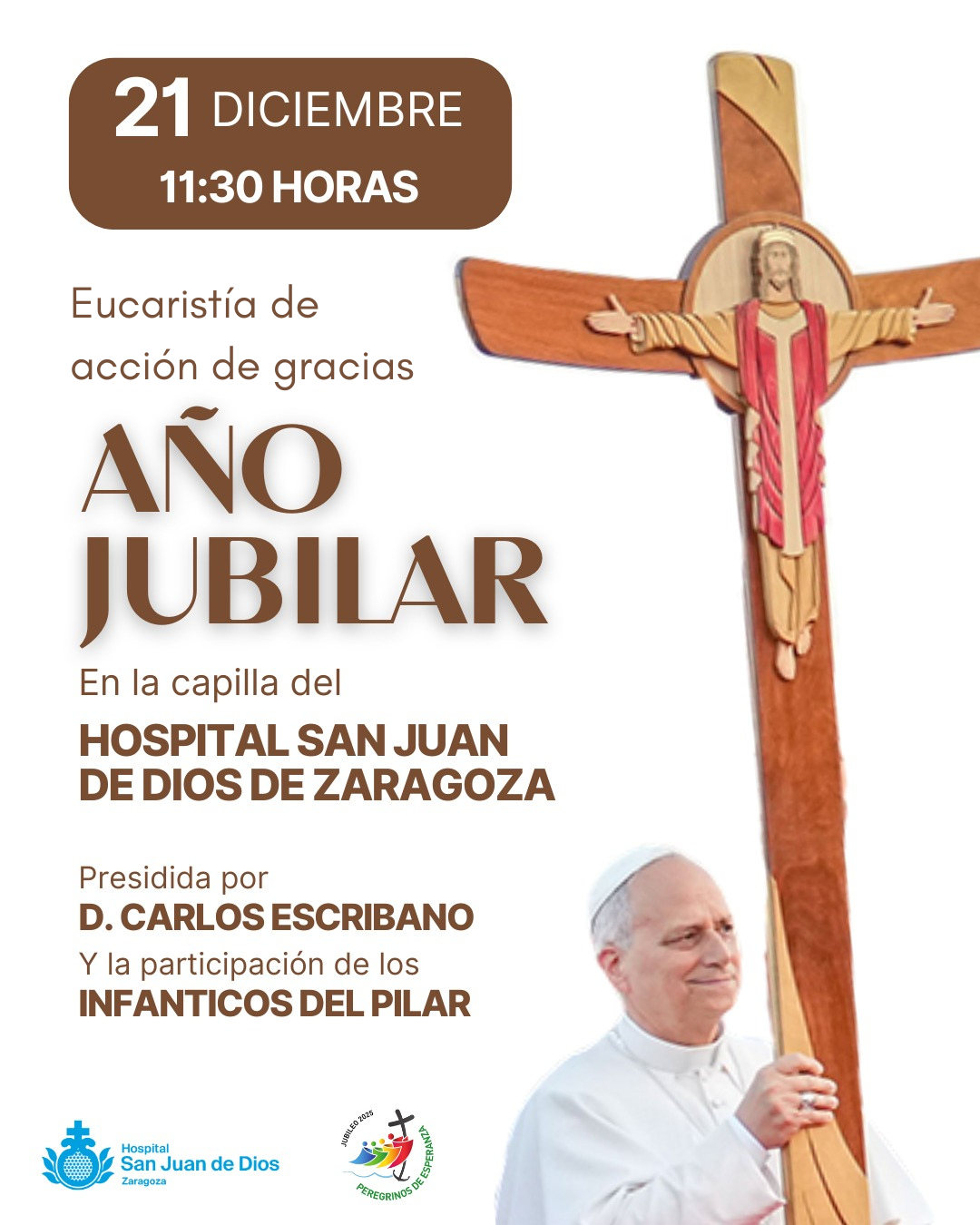 1. Hospital San Juan de Dios (Zaragoza) El domingo 21 de diciembre, a las 11:30 horas, la capilla del Hospital San Juan de Dios —designada como templo jubilar durante este año— acogerá una eucaristía de acción de gracias. La misa será presidida por el Arzobispo y contará también con la presencia y cantos de los Infanticos del Pilar, uniendo así la realidad del hospital con la devoción pilarista.