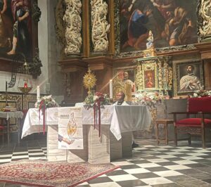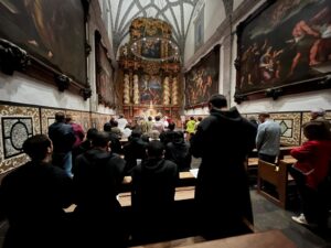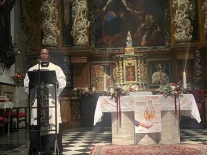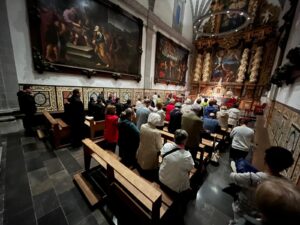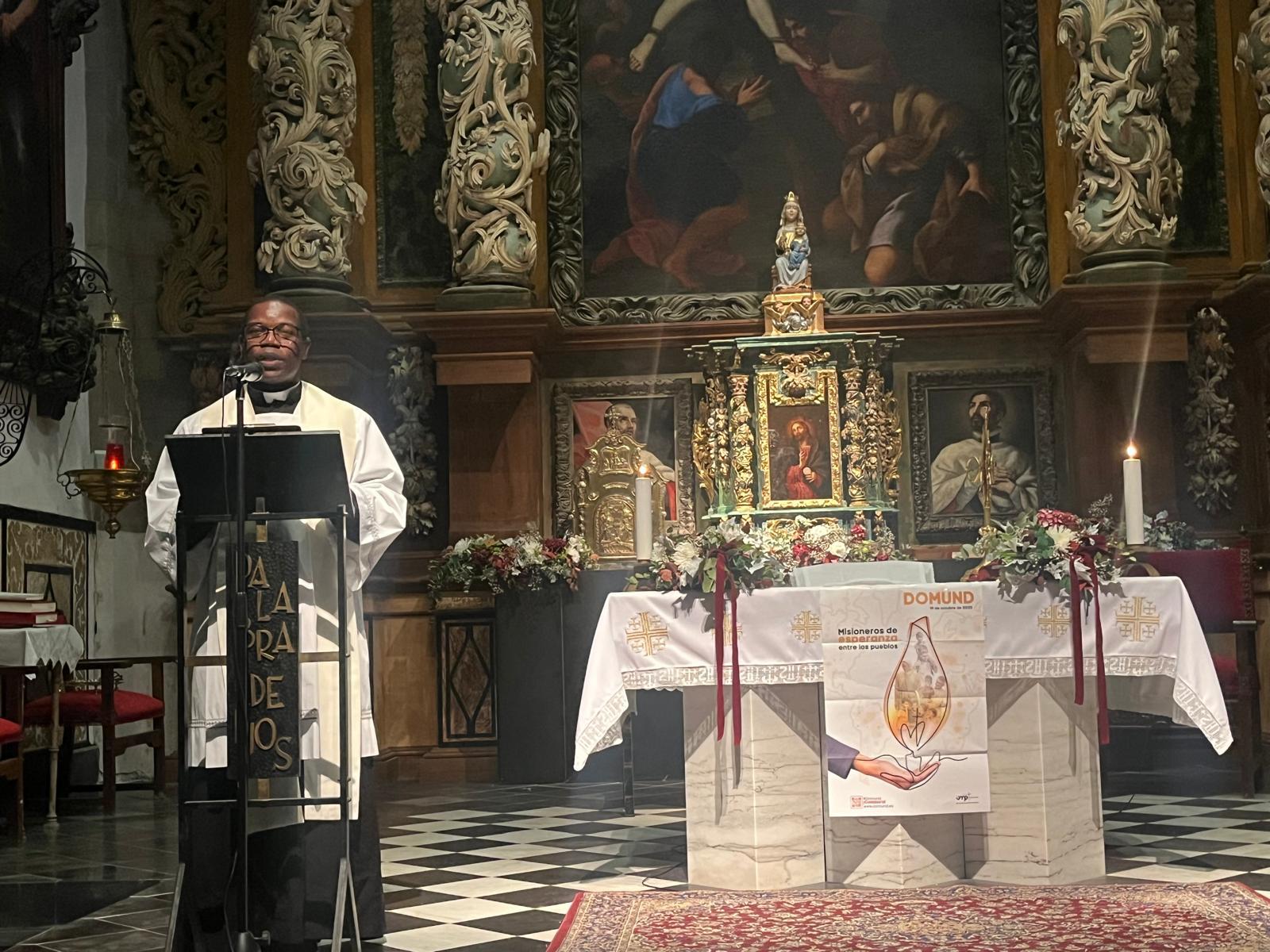 El delegado diocesano de Misiones, D. Prosper Mbabazi, dirigió la Vigilia del Domund en un excelente clima de oración y agradecimiento por todos los misioneros que entregan su vida en países de misión. Incluso rezamos con sus nombres por los sacerdotes y religiosas de la diócesis de Tarazona que se encuentran actualmente en tierras de evangelización, para apoyar su labor que buscan ser mensajeros de esperanza en un mundo necesitado.