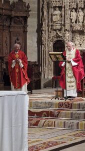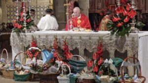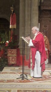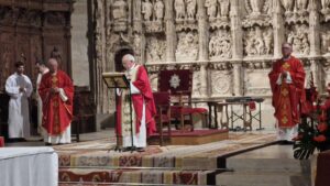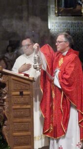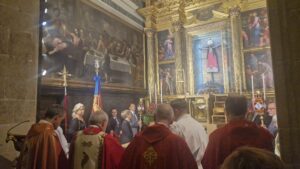 Dirigiéndose a sacerdotes, miembros de la Cofradía del Santo Cristo de los Milagros y San Lorenzo Mártir, seminaristas, peregrinos y devotos presentes en la catedral, el vicario gnral recordó que, desde aquel hecho milagroso, generaciones de oscenses han depositado a los pies de la imagen sus oraciones y súplicas: “Huesca y los pueblos circundantes han descubierto el bien que hace postrarse a los pies de esta imagen que desde la cátedra de la cruz quiere enseñarnos y mostrarnos el inmenso amor que nos tiene”.