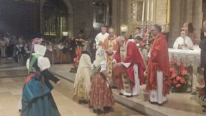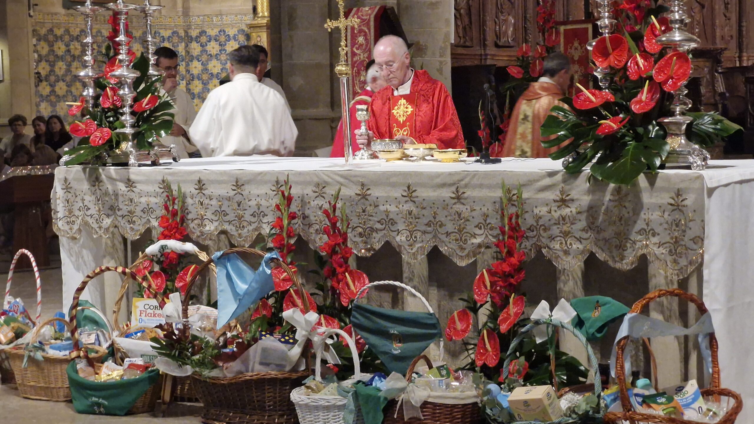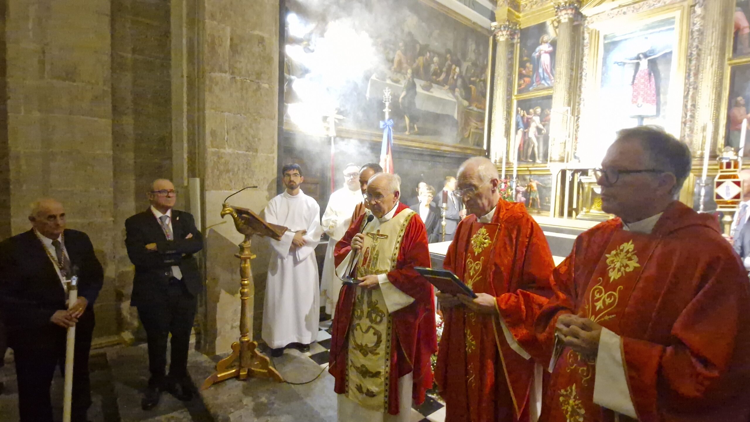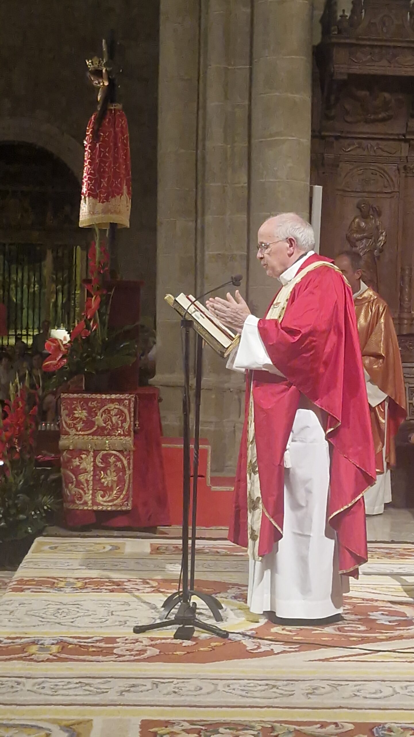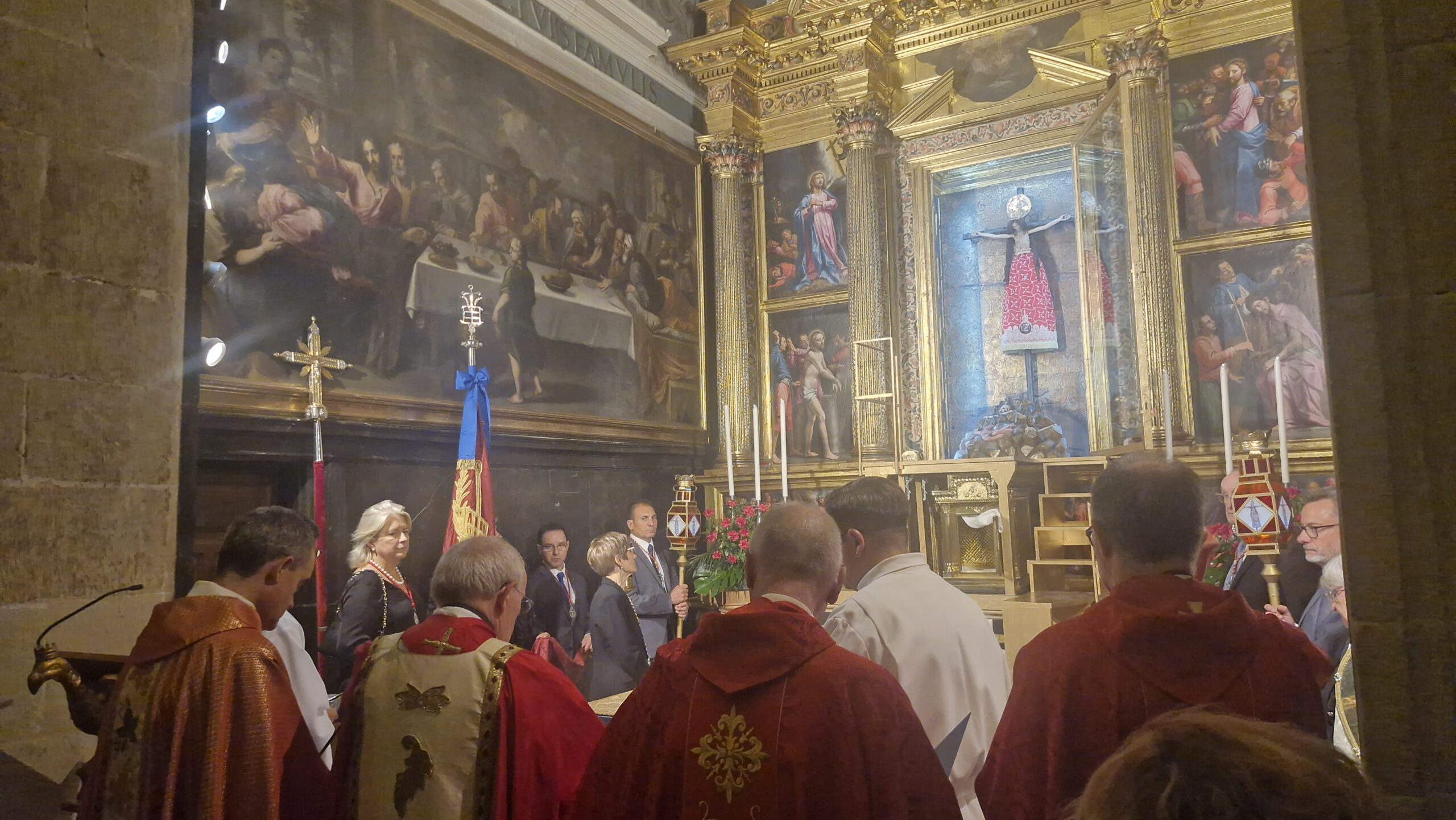 La catedral de Huesca ha acogido este viernes 12 de septiembre la celebración de la fiesta del santo Cristo de los Milagros, una de las solemnidades más arraigadas en la diócesis, que cada año recuerda su intercesión milagrosa en 1497: en plena epidemia de peste la imagen del crucificado sudó de forma milagrosa durante una procesión por las naves del templo y la ciudad quedó libre de la enfermedad.