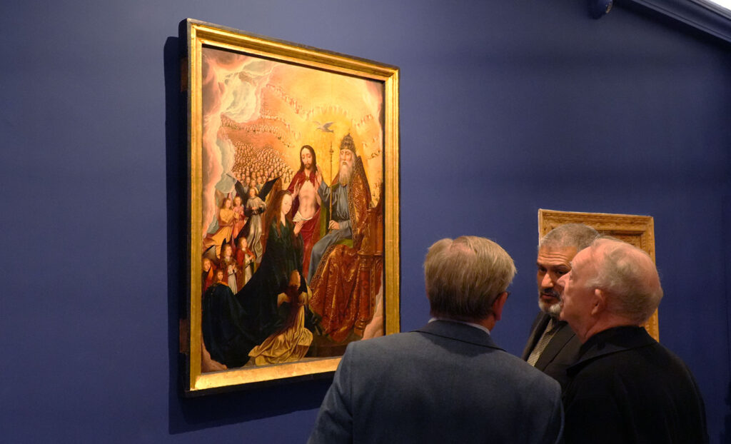 Tras la rueda de prensa, se ha realizado una visita a las instalaciones del Museo y su colección permanente, entre la que resalta por ser una de las últimas incorporaciones destacadas una tabla de Michel Sittow con la iconografía de la Exaltación de la Virgen María, que fue localizada en el convento de Carmelitas de Teruel y ahora puede verse en el Museo.