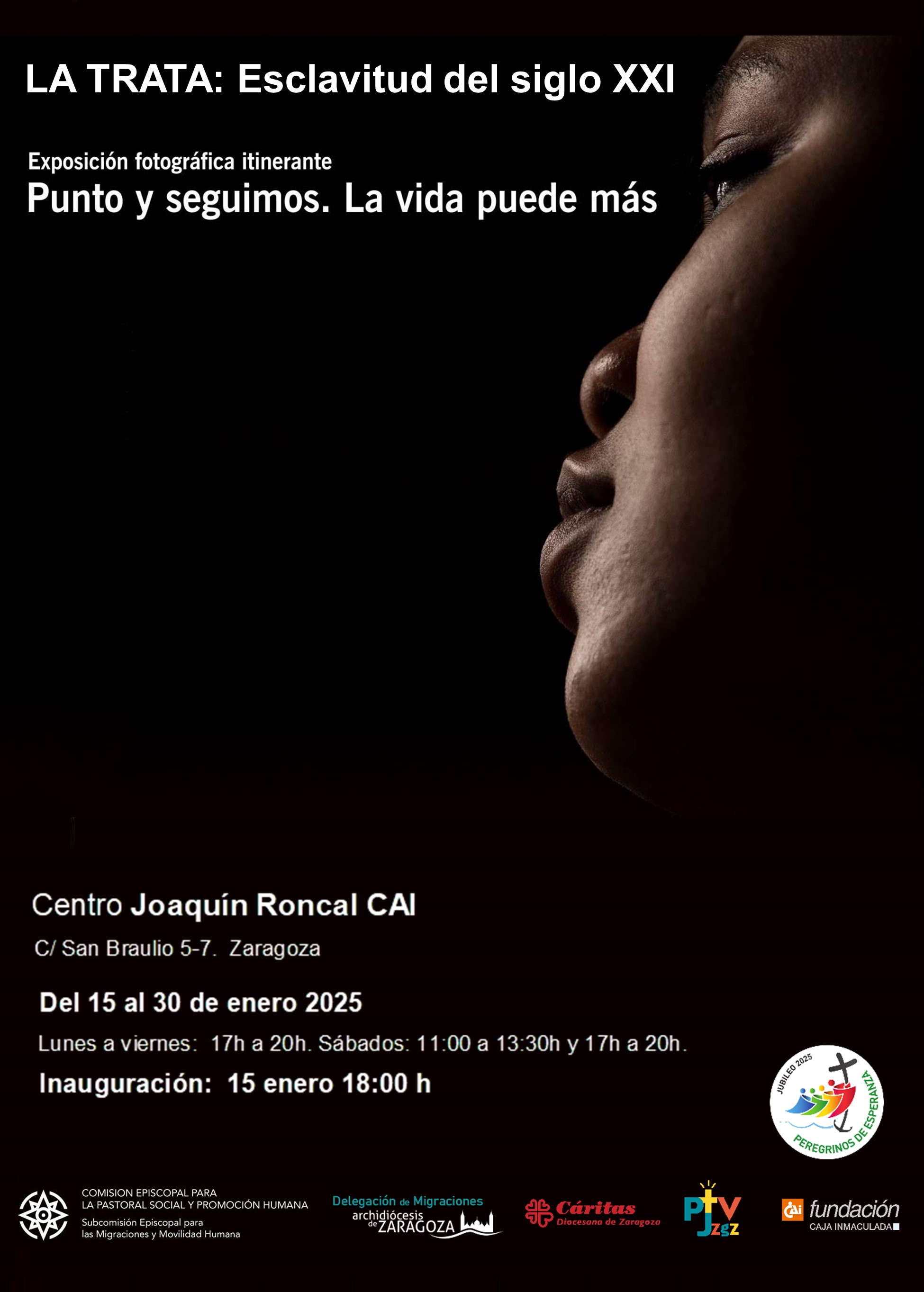 - 15 al 30 de ENERO: Exposición fotográfica sobre la trata: “Punto y seguimos. La vida puede más”. Centro Joaquín Roncal. La inauguración será el día 15 a las 18:00 h en el salón de actos de este Centro.