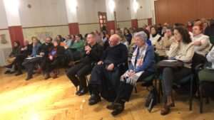 La delegada de Celebración, Silvia Peropadre, habló de la necesaria conversión personal y la corresponsabilidad laical, subrayando el papel que desempañan los animadores de la comunidad. Los asistentes pudieron escuchar el testimonio de una de ellos, Marta Calavera, consagrada y ecónoma diocesana. Por su parte, la secretaria-canciller, Beatriz Mairal, desgranó el decreto episcopal de 2024, un documento de trabajo que recoge el organigrama diocesano, y repasó los principales cambios que el proceso ha llevado aparejados.