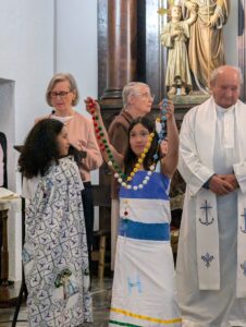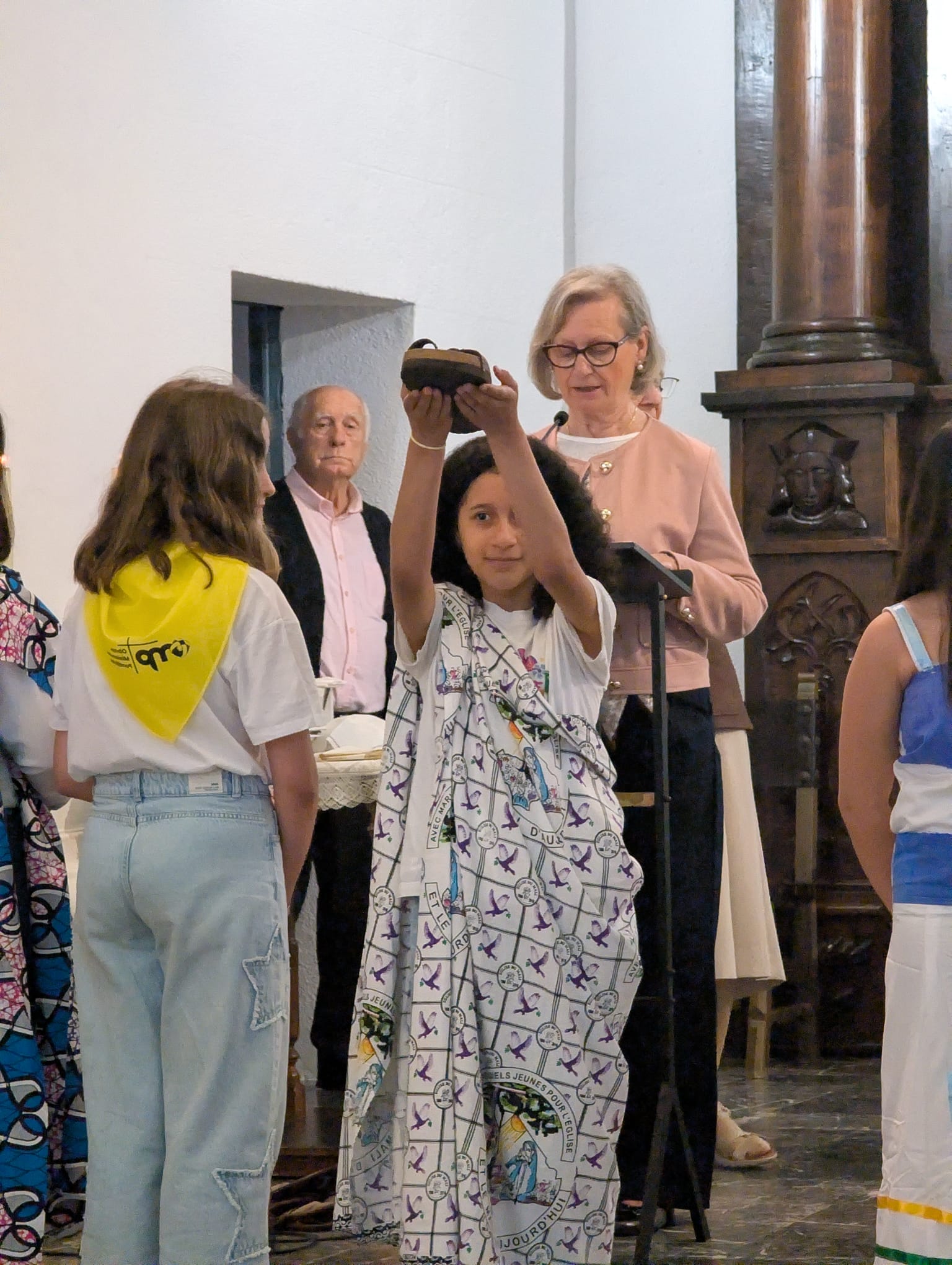 La celebración conto con participantes de excepción. Por un lado, los niños y niñas que forman parte del grupo de Infancia Misionera de la Unidad Pastoral de Graus, que realizaron un colorido y musical ofertorio. Por otro, Rosario Fumanal, una de las trece misioneras que permanecen en territorio de misión. Nacida en Samitier, compartió con los asistentes toda la mañana, haciendo ver que cuando tú tienes a Cristo en el corazón, vives con esperanza cualquier situación personal o de cualquier ámbito que te toque vivir en la vida.