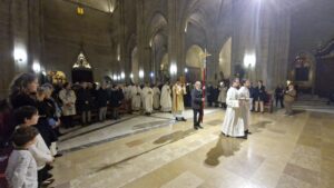 La catedral de Huesca ha acogido este domingo 28 de diciembre la celebración de la clausura diocesana del Año Jubilar de la Esperanza con una eucaristía que ha estado presidida por nuestro obispo, el padre Pedro Aguado Cuesta. Una fecha que coincidía con la fiesta de la Sagrada Familia y que ha congregado a cientos de fieles para participar en una ceremonia en la que las familias y los jóvenes de la diócesis han estado muy presentes.