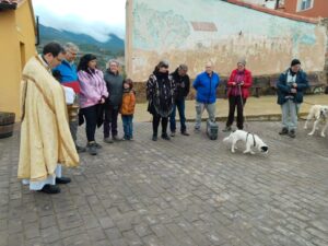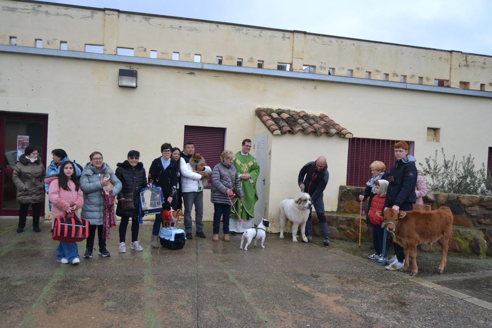En Tarazona, la bendición de animales reunió a decenas de familias en la plaza del Puerto de San Miguel, donde mascotas de todo tipo recibieron la oración y el gesto protector propio de esta festividad.