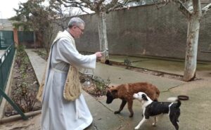 En Malón, los vecinos también se acercaron con sus mascotas para recibir la bendición de su párroco. Perros, gatos y otros animales domésticos llenaron la plaza en un acto sencillo y cercano que reunió a familias de todas las edades.