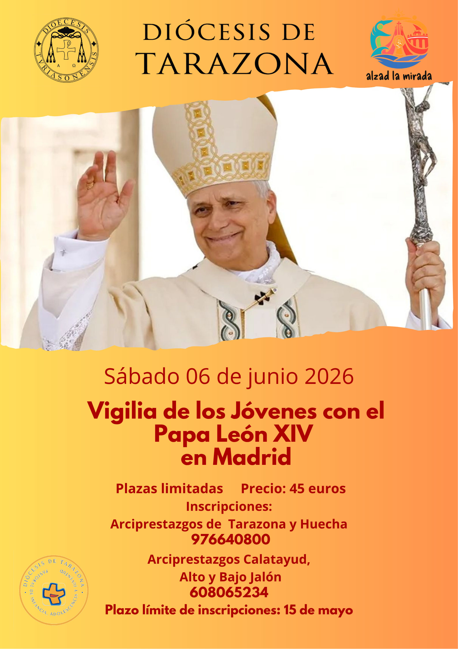 La diócesis de Tarazona participará el próximo sábado 6 de junio en la Vigilia de los Jóvenes con el Santo Padre en Madrid, una convocatoria que reunirá a miles de jóvenes y personas de todas las edades de toda España para vivir una noche de oración, encuentro y testimonio de fe junto al Papa.