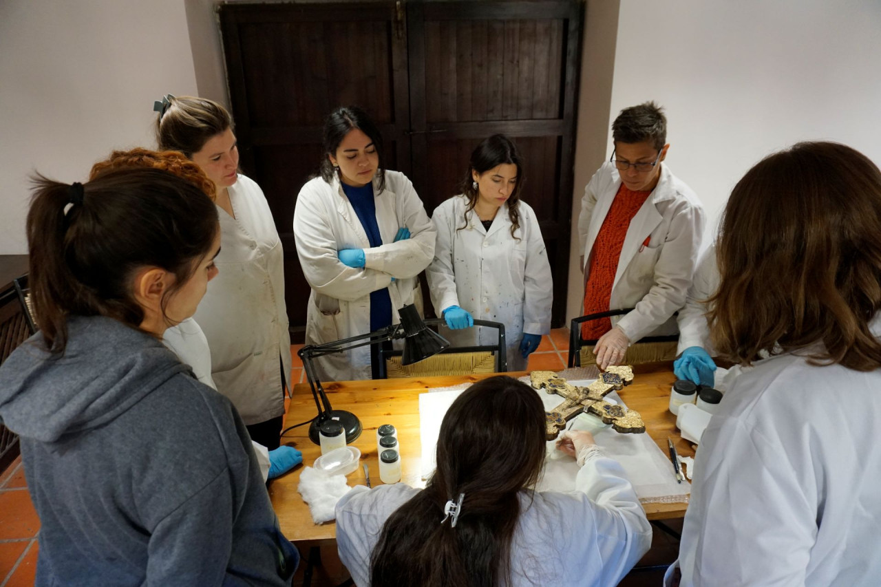 La actividad del Centro de Restauración de la Fundación, integrado actualmente por siete restauradores —la mayoría formados previamente en estos cursos— complementa y amplía el impacto del ciclo formativo, garantizando su proyección real en el territorio. Durante 2025, desde el Centro se ha intervenido en obras de relevancia como la Escalinata de Teruel, la talla de San Millán de Orihuela del Tremedal, la consolidación de los metales arqueológicos de la necrópolis celtibérica de Bronchales, la talla de San Roque de Torrelacárcel o la portada gótica de la iglesia de Molinos, entre otras actuaciones en curso.