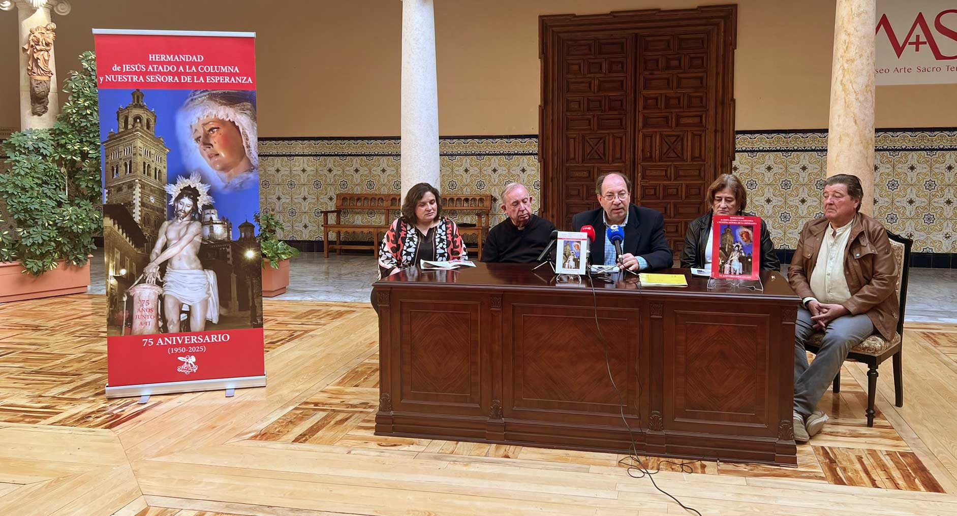 La Hermandad de Jesús Atado a la Columna y Nuestra Señora de la Esperanza de Teruel ha presentado esta mañana, en el patio del Obispado de Teruel, el programa de actos con motivo de su 75º aniversario fundacional, que se celebrará bajo el lema “75 años caminando junto a Ti”.