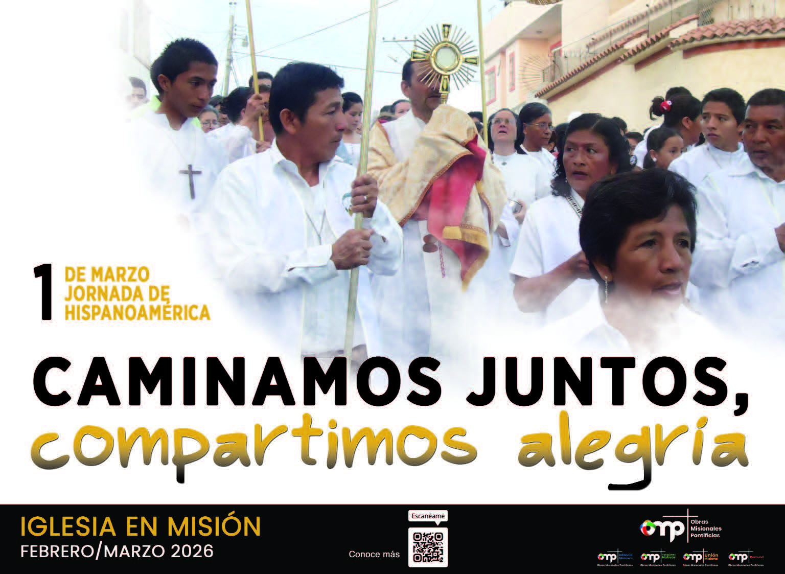 El lema que nos propone la Comisión Episcopal para Misiones y Cooperación con las Iglesias es “Caminamos juntos, Compartimos alegría” destacando cómo los misioneros comparten el mensaje de Jesús con los demás, especialmente comparten la vida hecha renuncia y entrega. Con palabras de San Pablo, “Me gastaré y desgastaré yo mismo por vosotros” (2 Cor.  12, 15). La Iglesia siempre ha entendido que existe para transmitir la Buena Noticia de la Salvación, el Evangelio de Cristo a todas las personas.