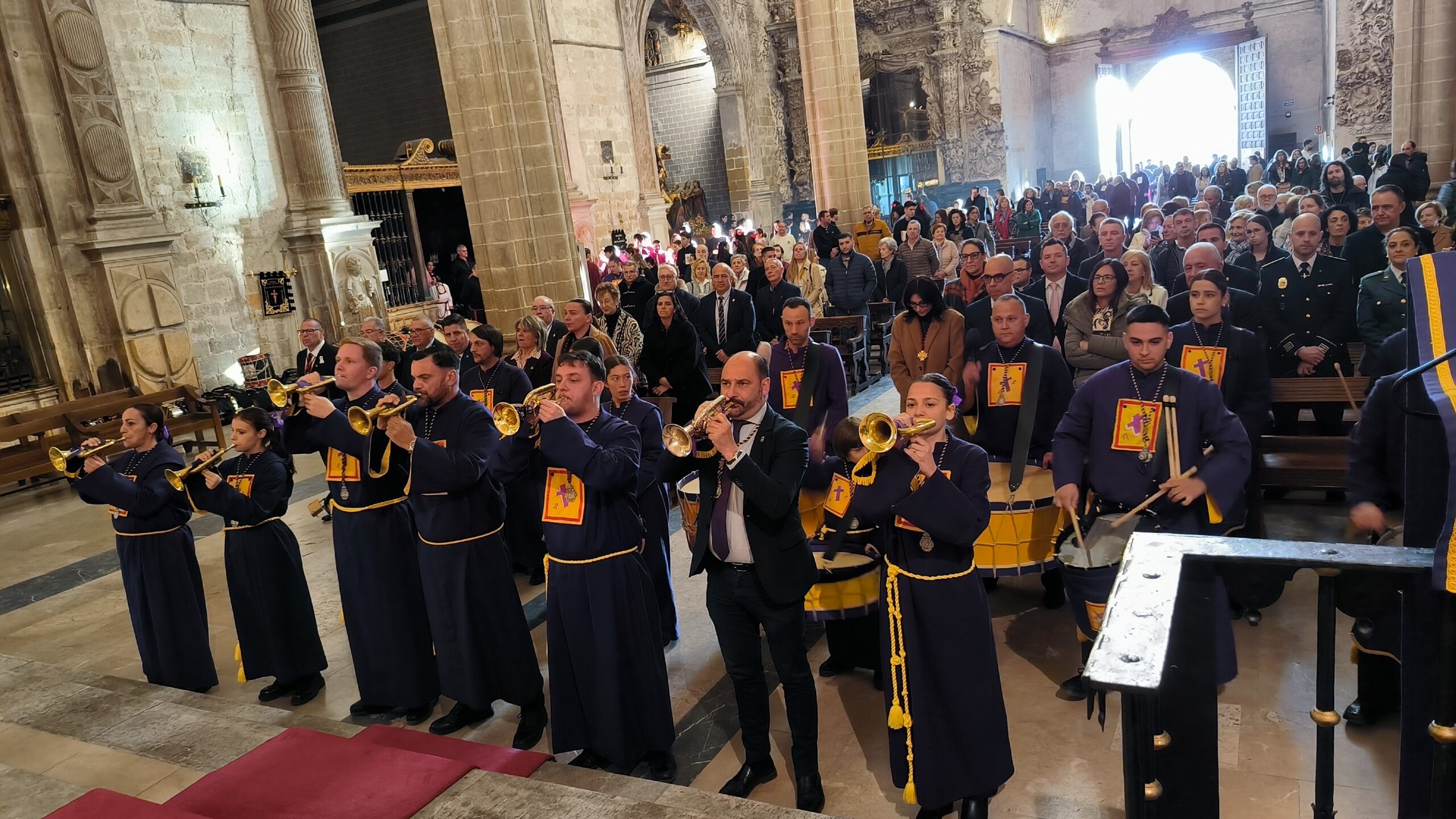 Como es habitual, las secciones de instrumentos de las cofradías han sido las encargadas de prologar el Pregón, en el que los Nazarenos han sido los encargados de iniciar y cerrar a golpe de tambores y cornetas. Al finalizar, la Plaza de Toros ha acogido el acto de Exaltación del Tambor.