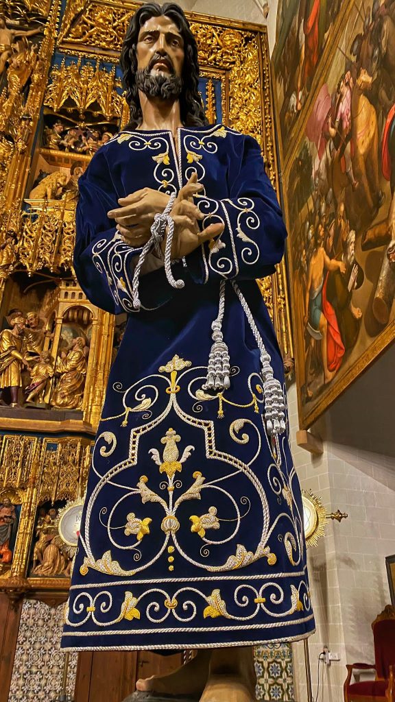 La Real y Calasancia Cofradía del Prendimiento del Señor y el Dolor de la Madre de Dios, celebra su 75 Aniversario y por este motivo, entre otros actos conmemorativos, ha vestido con una nueva túnica su imagen de Jesús Cautivo, obra del escultor sevillano Mario Zambrano Pareja, realizada en Cedro Real en 2013. Esta túnica, realizada en terciopelo azul marino con bordados en plata y detalles en oro, ha sido confeccionada por un prestigioso taller de Sevilla.