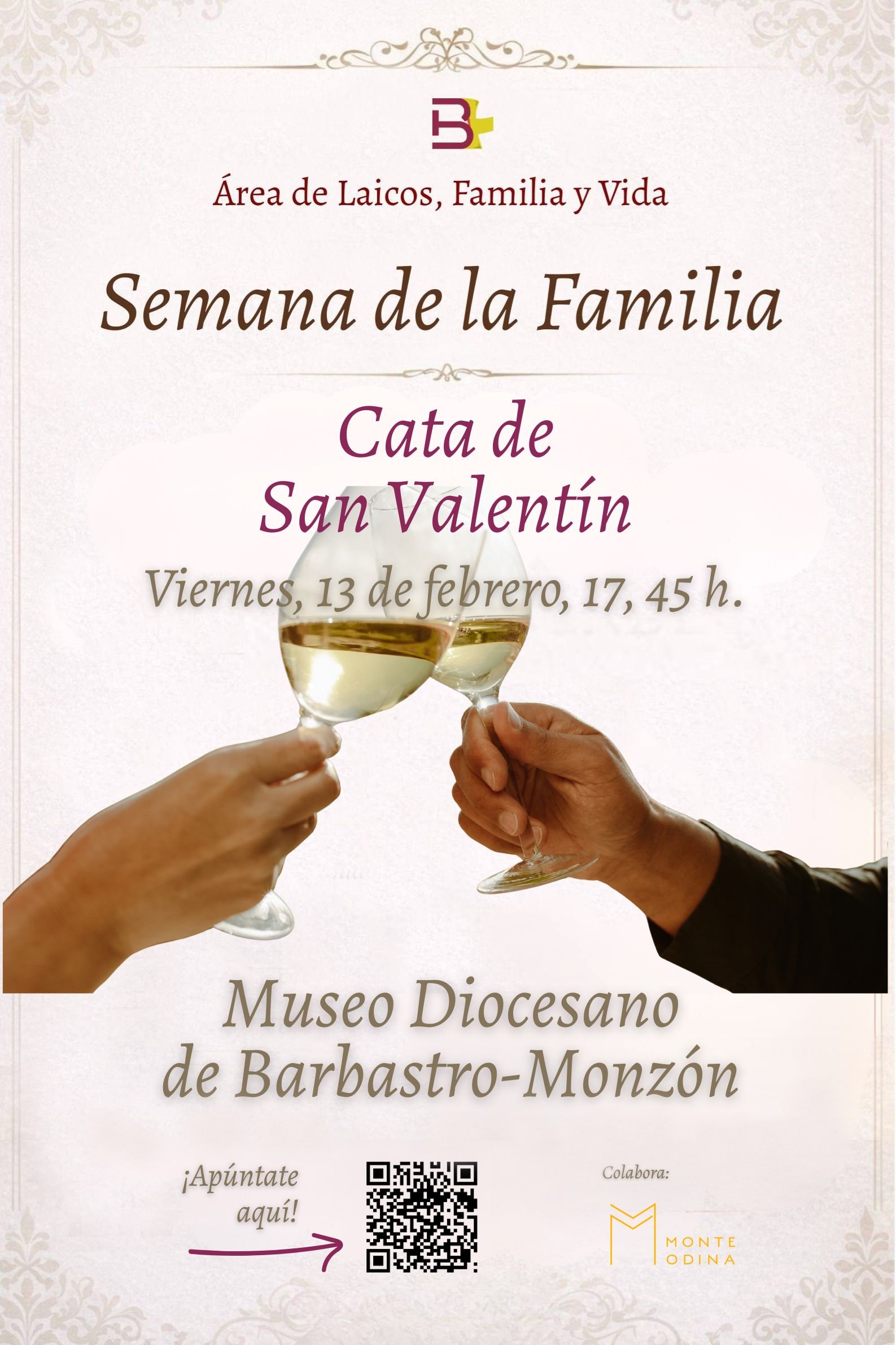 • Viernes, 13 de febrero (Barbastro): Como antesala al día de los enamorados, el Museo Diocesano de Barbastro-Monzón acogerá una Cata de San Valentín a las 17:45 h. Esta actividad lúdica y de convivencia cuenta con la colaboración de Bodega Monte Odina. (Se requiere inscripción previa a través del código QR del cartel).