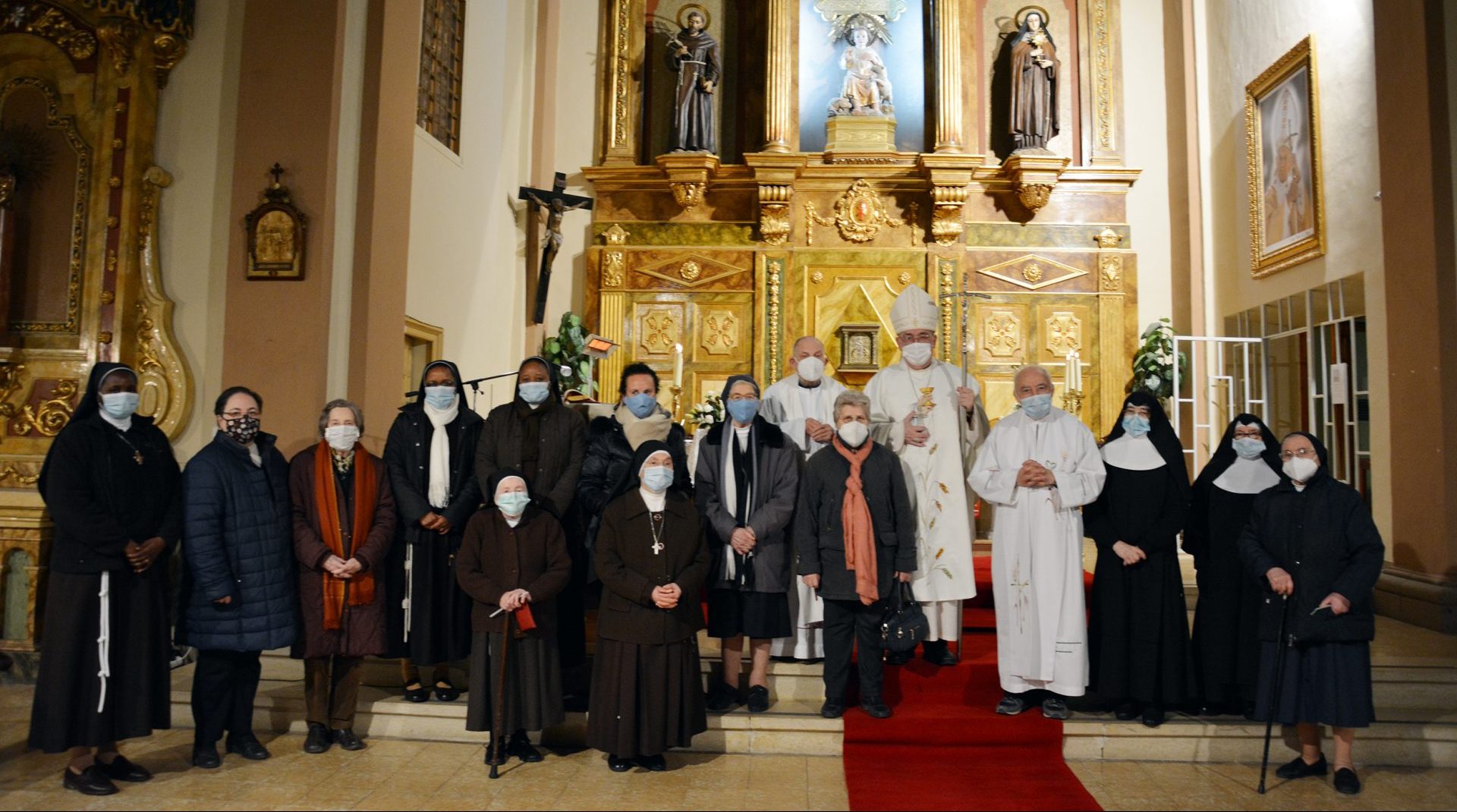 El obispo de Barbastro-Monzón, Ángel Pérez, presidió la clausura del 350 aniversario de la llegada de las Capuchinas a Barbastro, en la víspera de la fiesta de la Presentación del Señor, cuando celebramos la Jornada de la Vida Consagrada. Acompañado por el capellán de esta comunidad religiosa, José María Ferrer, y del superior de los Misioneros Claretianos de Barbastro, Carlos Latorre, el obispo reiteró el agradecimiento por la presencia y labor de las doce congregaciones religiosas de vida activa y contemplativa con presencia en la Diócesis, y de las representante de la Orden de las Vírgenes Consagradas y del instituto secular Vita et Pax.