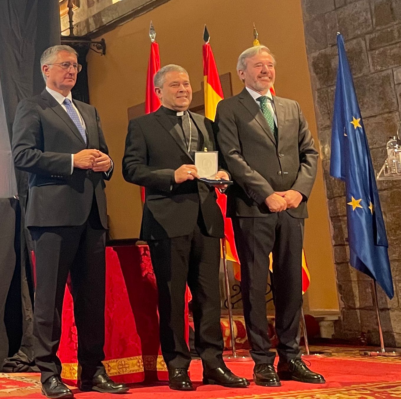 El obispo de Tarazona, monseñor Vicente Rebollo, ha sido el encargado de recoger la medalla en nombre de las seis diócesis aragonesas y ha pronunciado unas palabras de gratitud que enlazaron la custodia del patrimonio con su dimensión social y espiritual: