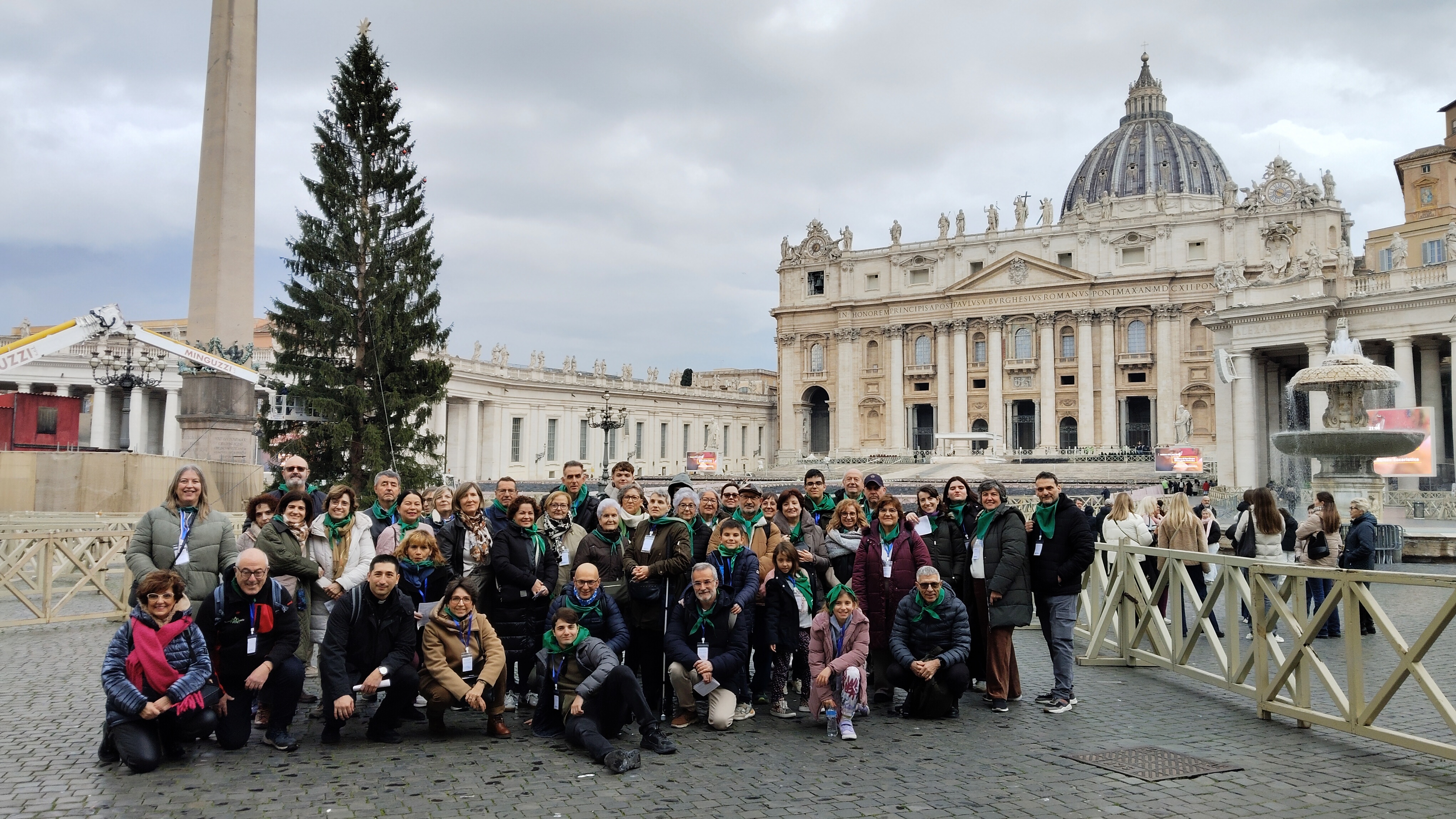 Del 4 al 7 de diciembre, en viaje organizado por la delegación de Familia y Vida, un grupo de familias de la diócesis de Huesca pudo celebrar el Jubileo y el paso por la Puerta Santa de la basílica de san Pedro. Acudió un total de 50 peregrinos en representación de las familias de la diócesis: ocho niños, varios abuelos, dos invidentes… Personas con situaciones familiares similares a las que cualquiera pueda tener hoy día, y que vivieron con emoción cada momento de la peregrinación: las Catacumbas de San Calixto, el Coliseo, los Foros romanos, y el punto final con la misa en la basílica de san Lorenzo Extramuros, donde descansan los restos de nuestro santo patrón.