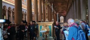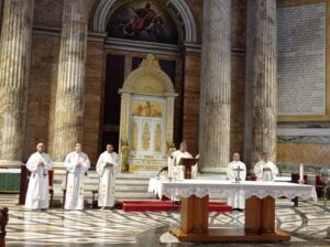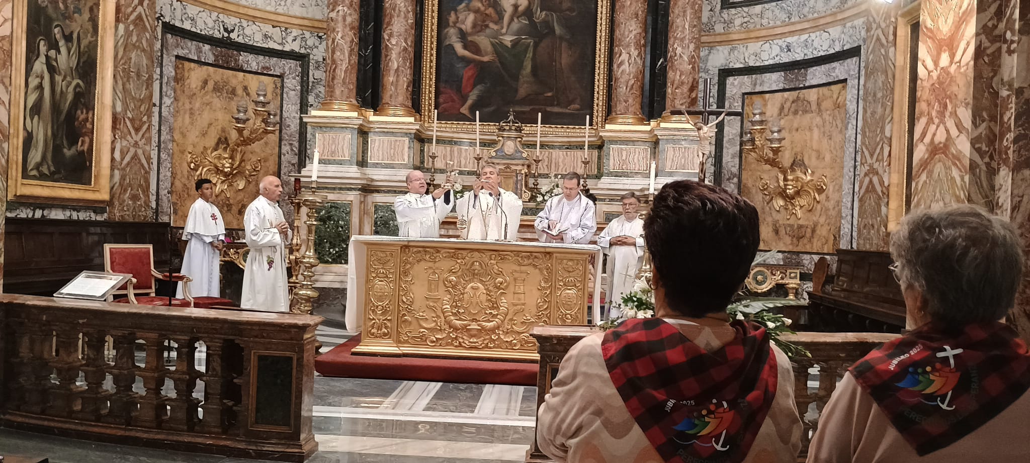 La primera Eucaristía tuvo lugar en la Basílica de San Pablo Extramuros, donde se pidió al Apóstol el ardor evangélico para anunciar el amor de Dios. También se celebraron misas en lugares significativos como la Iglesia de Il Gesù, ante la reliquia de San Francisco Javier, y en la Iglesia Nacional Española de Montserrat.