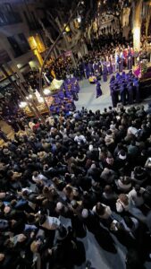 Tras este emotivo instante, la procesión retomó su marcha hacia la Santa Iglesia Catedral, donde finalizó en un ambiente de profundo recogimiento con la oración final de los nazarenos, a puerta cerrada. Barbastro se adentra en el Triduo Pascual, mostrando una vez más el fuerte arraigo de sus tradiciones y el compromiso de sus cofradías.