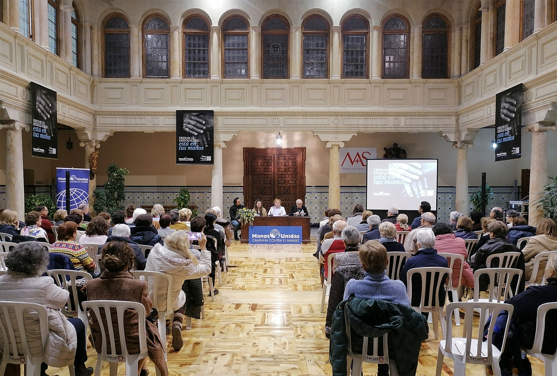 Manos Unidas de Teruel cuenta con un grupo estupendo de voluntarios como nos recordó su presidenta «que desde Alcorisa, Calamocha, Cella y Gea de Albarracín trabajamos para dar a conocer esta realidad injusta y desigual«